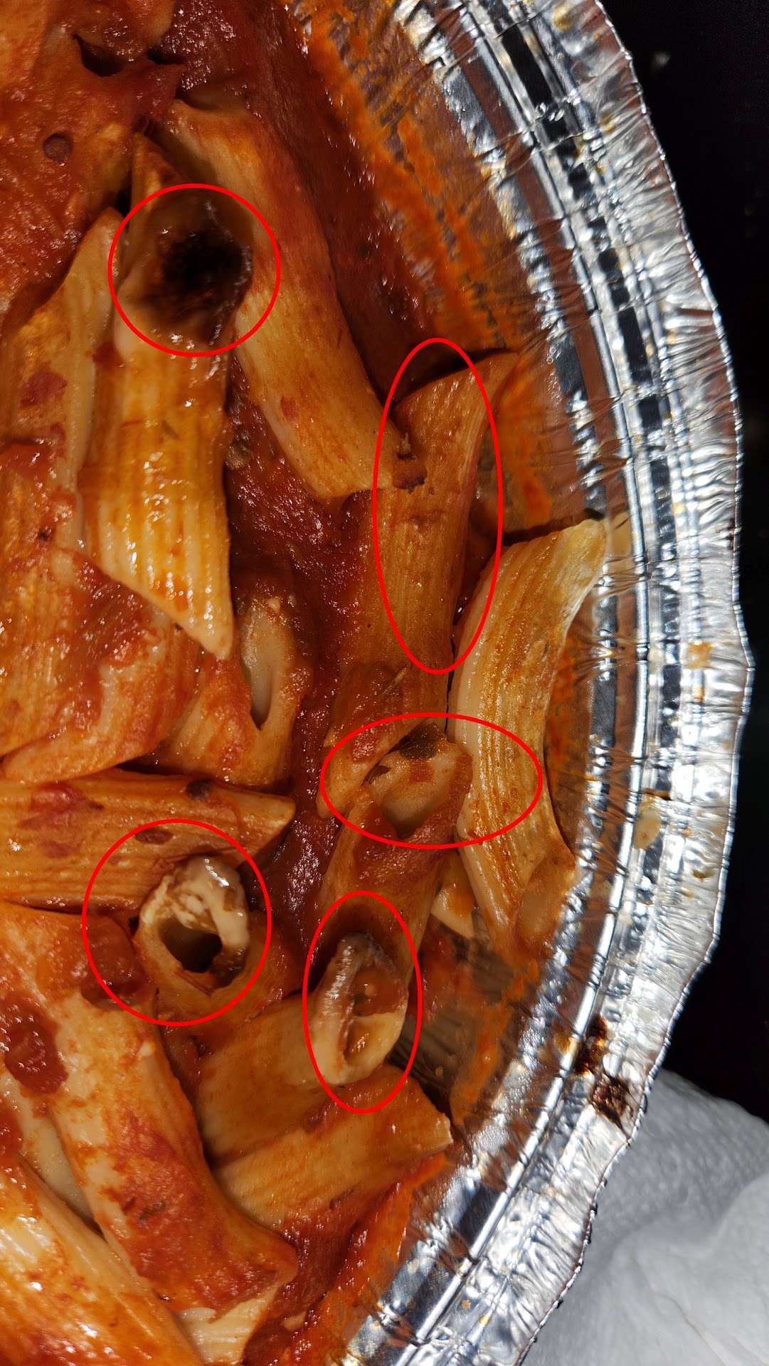 By the time I got home, I opened up the pasta to find that most of the exposed ziti was dry/burnt, meaning they either din't cook it fresh an reheated it in an oven, or it was sitting in an oven the whole time I was waiting for my food.