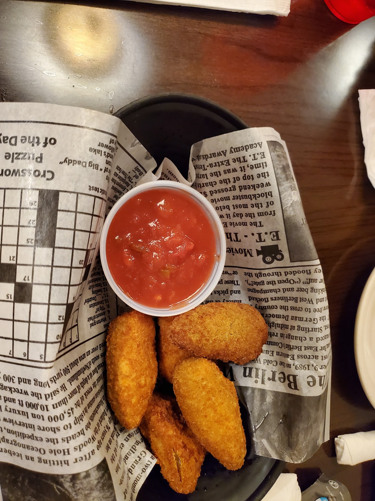 My wife's pretzels came with 7-11 nacho cheese that was hard, and I'm glad I didn't order food.