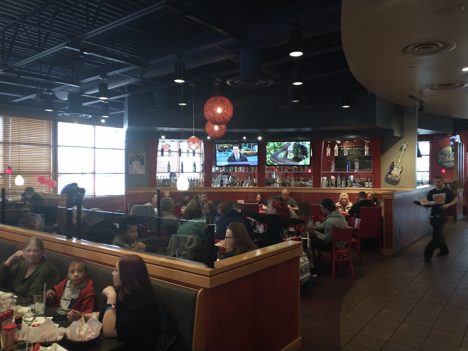 Stopped in here this evening with my family and mother, for a nice Sunday meal. There were seven of us, but we were seated promptly, when we got there around 5:15. Our server was Jessica, and though it was obvious she was busy, she was quite good. She was friendly, attentive, and even offered promotionally good comments about the house fare. We ordered our drinks, a tier if onion rings and two sides of fries to start. Everything was hot and tasty. Onion rings were crisp. And all came out within a reasonable time. I will say, i ordered a Labatts Blue light, but they only had Labatts regular. I graciously accepted the amendment. My meal was the Burning Love burger. I ordered the Yukon chips with the burger, per Jessica's advice. The burger was fine too medium, just as i had asked, and very tasty. The child, though good, were chips. They were similar to Ruffles, but a little brother, and not as salty. The burger was served with deep fried jalapeno rings, as well as pepper jack cheese, and can't with a roasted jalapeno sitting on top. Ask was tasty. I did have to flash down Jessica just once, to get more i lemonades for my boys, although she found me before my beer was gone, and promptly refreshed my empty hand. The rest of my pay also enjoyed their fare. They had burgers, and crispy chicken sandwiches. The only drawback to this whole experience, and yes, I am aware of the your of restaurant this is, but it was quite noisy. It wasn't packed, but the decide level from sitting tables did seem to ring out. I could not hear my mother, who was at the opposite end of my same table. Nonetheless, aside from this, i have no other complaints about the dining experience. Tasty food, prompt, attentive and friendly service, and reasonable prices. I would definitely return....
