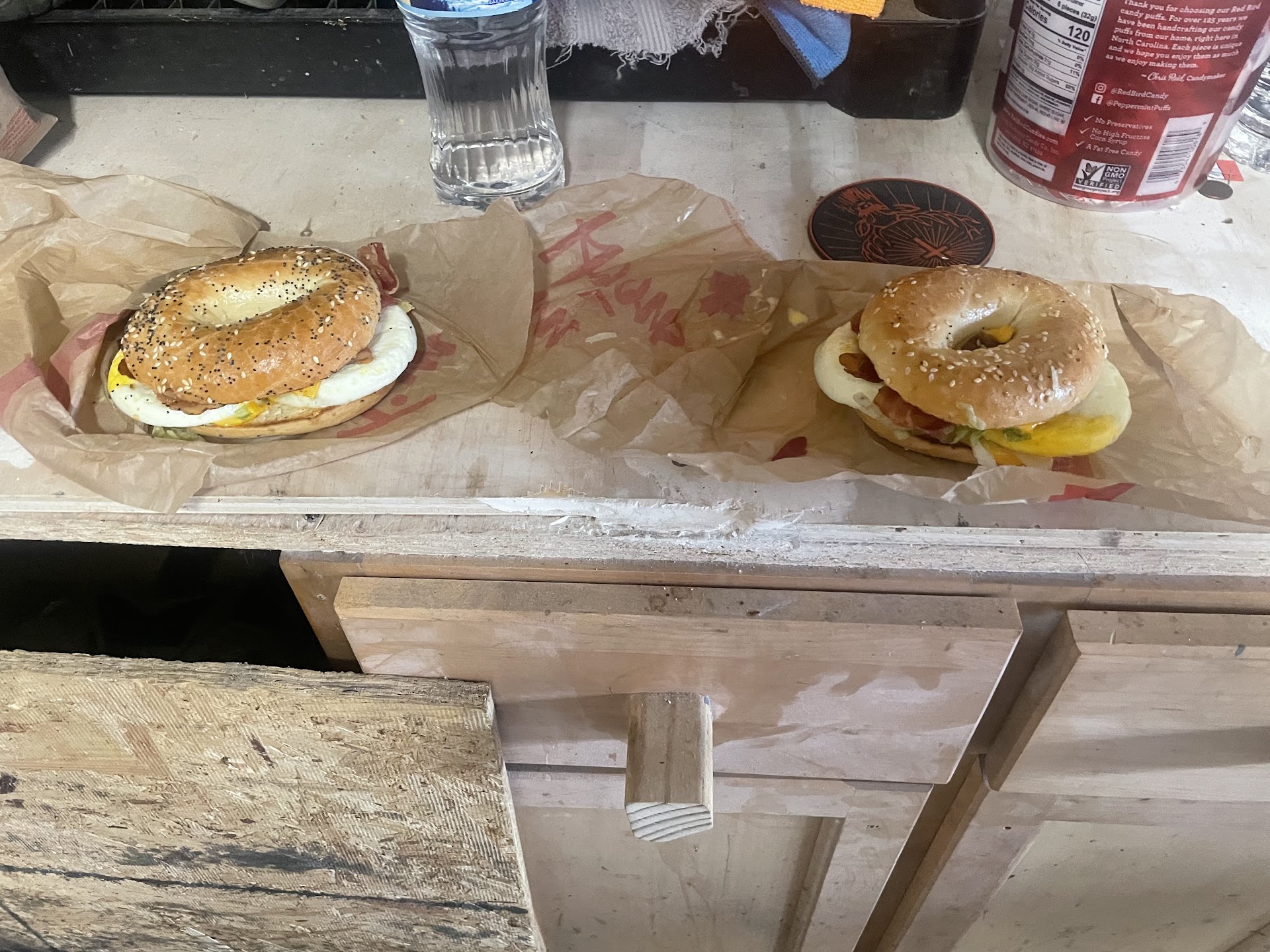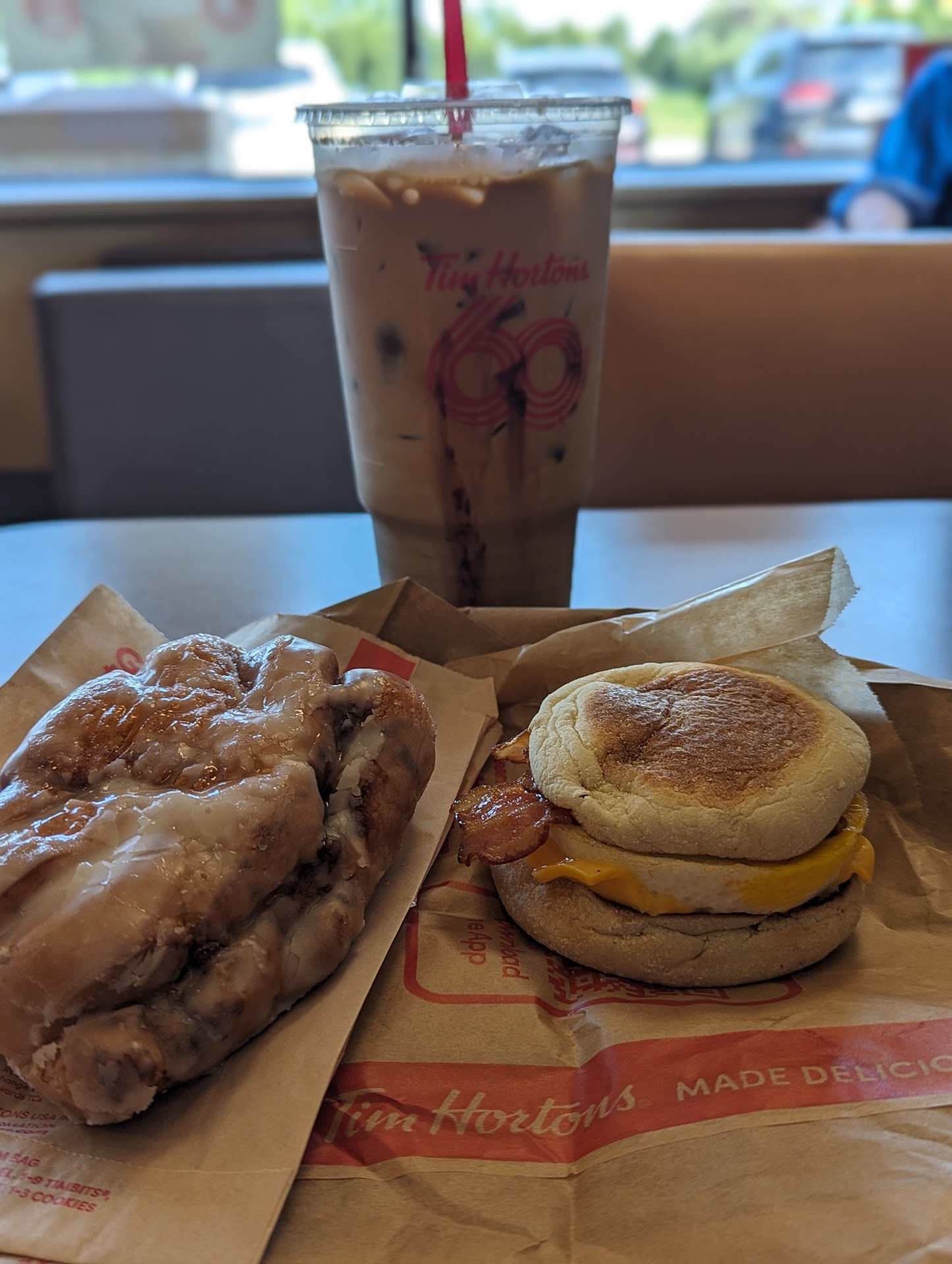 I'm not even angry, just disappointed. As I walked into the restaurant, and being the only person there, I was not greeted. I then asked the employee at the register (who was wearing his street clothes) what cheese bagel options they had. He proceeded to list off: plain, salt, and raisin. I assumed he was new, which is understandable as he could be nervous. I then asked if they had asiago or cheddar. "No we're out of that." No apology whatsoever (not that it was needed, I understand that every store has a truck day to refill, but come on!). I settled on two sausage egg and cheese on plain bagels. A "seasoned" employee stepped in and proceeded to locate a four cheese bagel buried under a pile of other varieties. Okay fine, the wife at home gets the cheese bagel she wanted, awesome. I also ordered a small iced cappuccino. The "seasoned" employee handed it to me and stated, "this is the best one I made all week! It didn't even explode!" I know, it sounds insane, but that's not a joke. As I waited about ten minutes for my breakfast order, the employee on the sandwich station walks over and literally yells at me, "we don't have any four cheese bagels!" She was then handed the bagel by the employee in front that located it from the pile, and took it back to make the sandwich. Another five minutes goes by and she brings me the bag and simply states, "I'm a liar we did have a cheese bagel." I saw two other customers come in an receive the same level of service. One of the other customers had to explain two times to the new hire what a medium double double was. As I left, the original "bagel pile explorer" squeaked out a, "have a nice day." That was nice... I guess. As I originally stated, I'm not even mad, just disappointed. Being a former employee, this location was atrocious, and extremely concerning. I have never had these issues at any other store. It is across the street from my house, but I will drive an extra three miles to go to my original store, where I know I will be treated properly and warmly. I don't want anything. This isn't a review I'm hoping will get me free stuff. I just thought whoever reads this should know, and hopefully take proper action to correct it, so I and other customers can enjoy these rare days off of work and eat really good food and drink good coffee Also, I forgot to mention, all the lights were off except in the employee area in back...? The entire front/dining area was dark. Not sure if electrical issue or they just didn't want to...