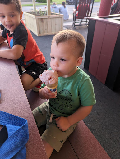 Read moreSince we live so close I really wanted to love this place. The ice cream is fine but the portions are tiny. My partner and I both ordered a large Sundae. The girl at the register said a large would be 3 to 4 scoops of ice cream and pointed to the container example. It looked a little small but I figured the ice cream would mound up above the top of the cup. Nope. Even with a thick layer of waffle cone chips and whipped cream on top, the whole thing barely reached the rim. There was barely any chocolate sauce on it. For $8 I could buy an entire half gallon of Velvet ice cream.