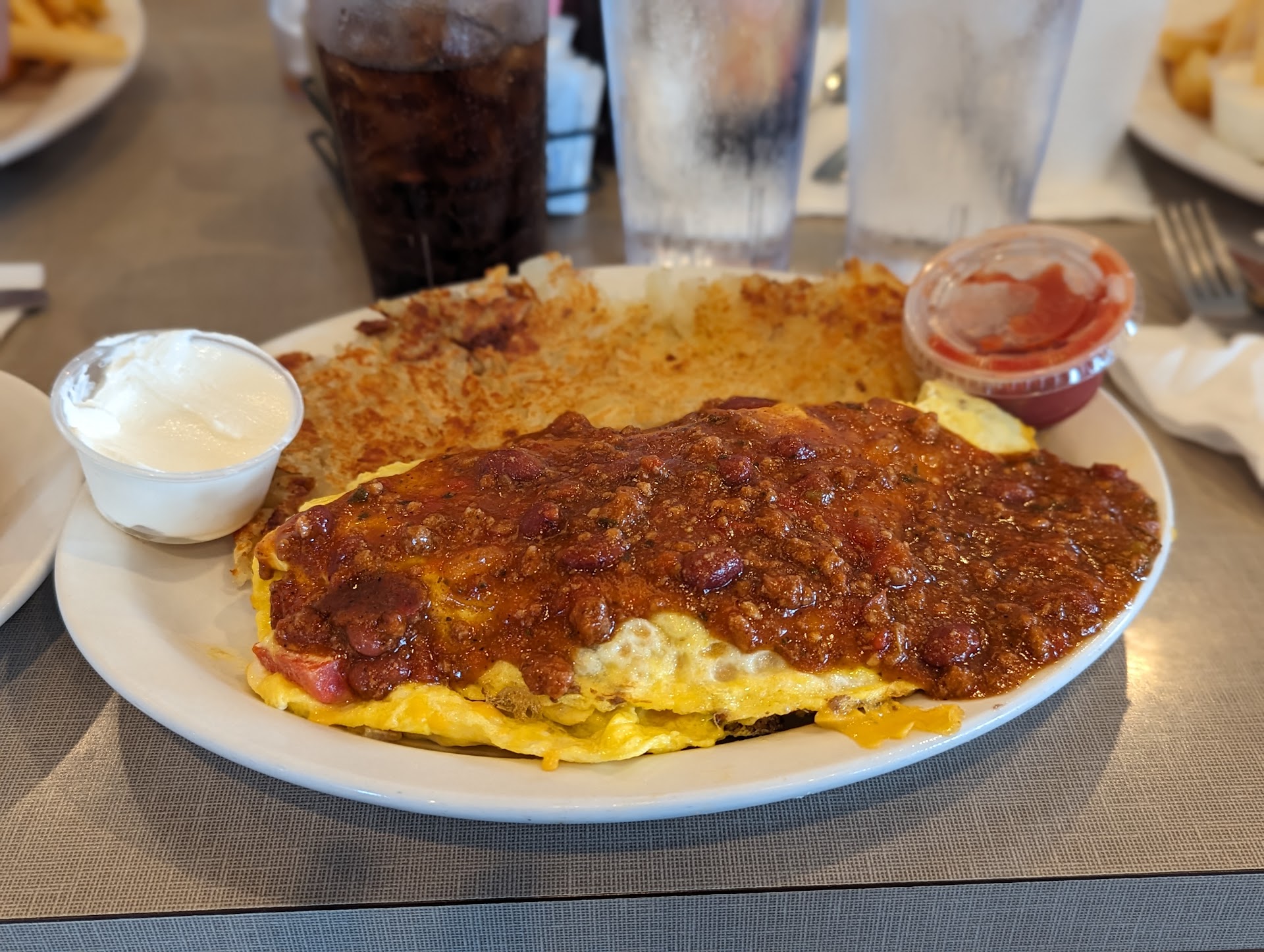 1-26-23 Update. I had the fruit explosion pancakes today. Wow are they a treat. Fresh fruit (bananas, strawberries and blueberries ) with cream cheese between the layers and whipped cream chocolate drizzle on top. Just a really good treat. It's a little rich, so that's why I got the sausage patties. No skimping on the portion size either and coffee cups stay filled.