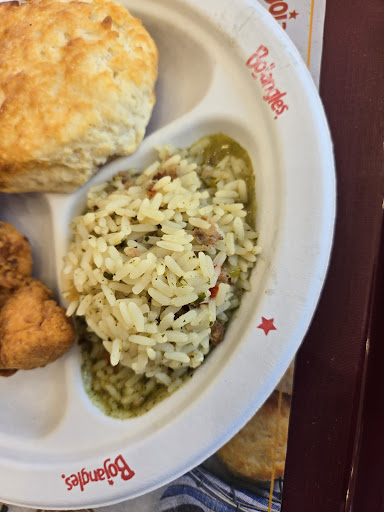 Read moreWorst Bojangles visit ever. After placing my order, it took 20 minutes to get my food. The restaurant had 4 other tables with people waiting a l9ng time for dood. The six people behind me got their food rather quickly. It was just a 4 piece tender with dirty rice. The quality was horrible. The rice was not cooked completely and was watery. It was not edible. ( see picture ) There were out of large cups. So, if you wanted a large drink, they would give you multiple cups.