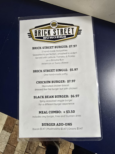 Read moreBrick Street Burgers was a good experience. Located right of MC's campus, I was able to easily get to it. Parking at busy times may be a challenge to but it is worth the short walk. I was greeted quickly by a friendly worker who answered my questions. I sat at a table and the food was delivered quickly. The inside was very clean and cool. I had the double cheese burger combo. It was reasonably priced. Both the burger and fries were seasoned and delicious. I will be trying the chicken...