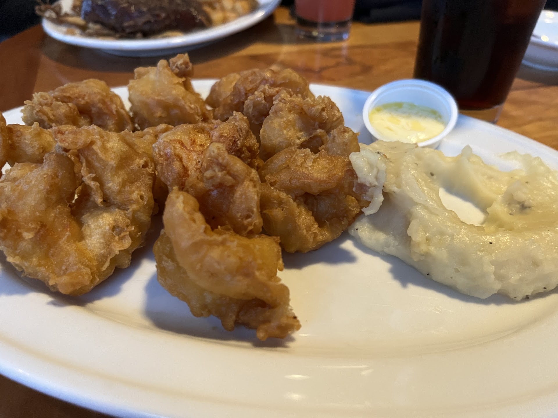 Read moreWe waited literally 2 hours to be seated. There were tons of dirty tables waiting to be cleaned. You could tell the staff was hurrying but it's like something is just completely out of sync here. For the wait time I expected to be wowed by the food and I just wasn't. My daughter got the Angus burger and sweet potato fries which she said was great. My dad got some kind of seafood platter. What a joke. The "scallops" were the size of a dime. I could hardly believe my eyes. I got 4... FOUR small onion rings with my meal. I was not a fan of the chicken George that everyone raves about. It was a huge portion which was really unnecessary and I honestly would've rather had more onion rings! There's nothing really "wrong" with the chicken but the batter is sort of just bland and tasteless. It NEEDS sauce and their house sauce just didn't do it for me. Way too sweet. My partner got some kind of fish which was exceptional to me, someone who doesn't care for fish, and I would've rather had that because it had a nice glaze. The mac and cheese... guys... soooo many breadcrumbs. Let's just not. It does not need that. It's really pretty good without it. Throw some parmesan cheese on top for the crispy crust instead! Our waiter was great. The staff is pretty nice and they really seem like they're trying but man... the organization of the staff just seems off or something. They needed about two more people bussing tables. I'd rather stop seating for 20 minutes to clear tables than keep forcing people to wait. The atmosphere is nice. It's the perfect location in Clinton for this business to flourish even more but they need a little help. I probably wouldn't go out of my way to go back even though I visit...