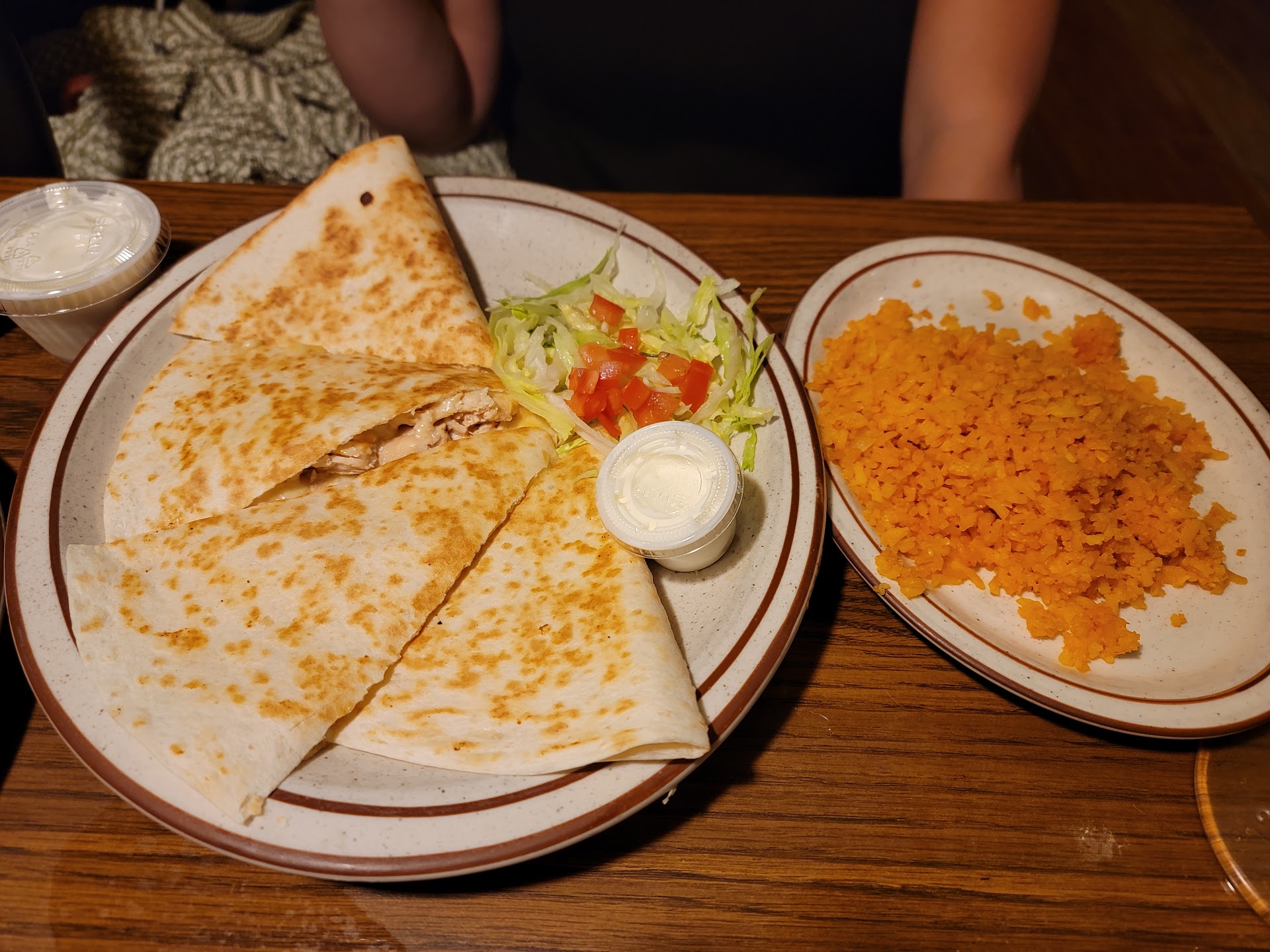 El Toro has the best margarita in the area hands down, it's not even a close comparison. Oh, and the food is great too. Seriously though, Wednesday and Thursday nights offer BOGO margaritas. The Fuzzy Berry is my favorite, try one for yourself and you will find out why! Complimentary chips and salsa are offered, the chips are fresh and the salsa is mild. On this trip I decided to go with something new and get the Pollo Loco, it was delicious. The chicken wasn't overcooked, the 4 flour tortillas it come with were nice and hot, and the sides of refried beans and rice weren't bland at all. I was very impressed and will get it again. My wife went with the jumbo chicken quesadilla and she said it was also delicious and made it a point to compliment the rice also.