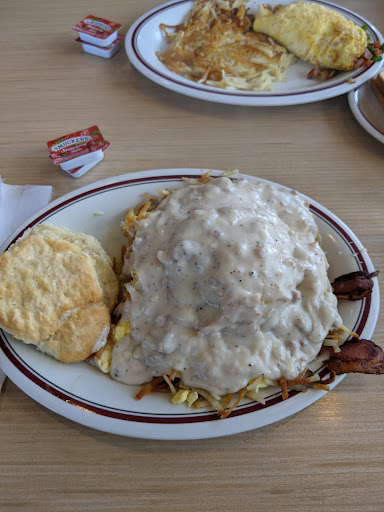 When first walking into the restaurant I noticed that the interior was almost a mirror image of the similar restaurant Waffle House. The only difference was that their main color was Red unlike the Gold that Waffle House uses. After hearing above average reviews from multiple people close to me I decided to stay, but lowered my expectations so I wouldn't be let down if I got only a "decent" breakfast instead of the "unbelievable" breakfast I was told about by so many. I was only somewhat hungry, but figured I should order a variety and see what the hype was about. I started with my usual coffee to drink, and then ordered regular waffles, 2 eggs overeasy, some bacon, and full order of biscuits and gravy. Less than a minute later, the very friendly waitress that took our order had returned with the coffee my guest and I had ordered, and then she asked us each 1 question that quickly separated them from Waffle House, she actually asked from the start of we would like to to watch and automatically refill our coffee mugs when they were down to a certain level OR if we would prefer to let her know when/if we wanted more so that she would not interrupting our quiet breakfast. We both agreed that it was alright for her to keep an eye and refill automatically, but never being given that option before, we expressed great appreciation for asking instead of assuming our preferences. I have witnessed many people who were having bad days before and wanted to be left alone and had become very irritable after the server walks up to the table many times in a short period constantly checking which led to their poor tips from that customer. At this point I cracked a little smile and thought to myself, if she keeps up this wonderful customer service then she will be smiling for a long time when she sees her tip. I tasted the coffee and was pleased to taste that it was freshly made. These 2 things had quickly had me stop assuming poor quality all around and started to become anxious about wanting to see if the food could be as great as the coffee and staff. It seemed just a minute later she came back with our food orders, and before I could ask she was placing a few extra napkins on each side of our table. She made me smile again with that action because most places they will place them down in a hurry in the middle of the table. I instantly knew that this place was all about customer satisfaction. The biscuits were delicious. Nice and fluffy, but not undercooked. And the gravy... Is now on my top 3 list of favorite places. I never thought anywhere could compete with those, and now this just beat them. The bacon was crispy, but not burnt, and the eggs cooked to perfection. Now was the waffle. It was a very light golden brown, making me thing the inside was going to be pretty doughy, and again I was wrong. At this point, my guest mentioned that I was smiling alot in more than usual this day. Without saying much I just nodded my head And shrugged. Upon completion, the server returned and asked how we enjoyed our meal and asked if we had any tips or suggestions for them to better future customer service. At this point I was smiling from ear to ear and shook my head no and mentioned to her that she did an amazing job and went above and beyond what we expected. She then handed us the bill stating that we owed only $21 for the combined total. My guest chuckled and had to ask if she charged us for everything and stated we were expecting it to be that price for each individual and she smiled while saying she gets that alot. Looking at the receipt, it was all in there.we were so satisfied with this place that we decided to make sure the waitress understood that we appreciated everything from her and after paying the bill we each handed the lady a $25 tip, for a combined total tip of $50. As we walked out, we waved and let her know we would be returning next Sunday for more. And that smile remained for the...