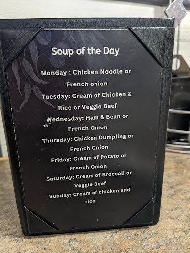My dining companions chopped sirloin, he said was served with too much pepper as well. The specials of the week all looked great, and the cream of chicken soup that came with the meal...