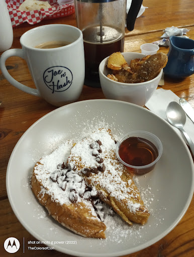 We tried to go to Huddle House but we have a group of 6 so it was too packed. We called down to Joe & Hash who enthusiastically invited us down to eat on their beautiful back patio and since bit was only about 3 min away we took them up on their offer.