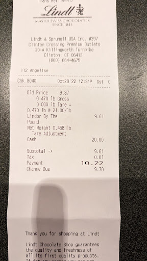 Read moreWe had a great experience a few months ago. I was excited to share the same experience with my extended family. We walk into the store on Sunday August 17th at 5:35 pm. There was a sign on the door indicating the drink bar was closed, including ice cream! Meanwhile, store hours SHOULD be and is clearly displayed as 6pm closing. The gentleman/employee wasnât very friendly either, or emphatic for the inconvenience. We walked right out the store, no interest or motivation to purchase the delicious chocolates we...