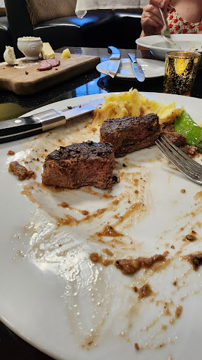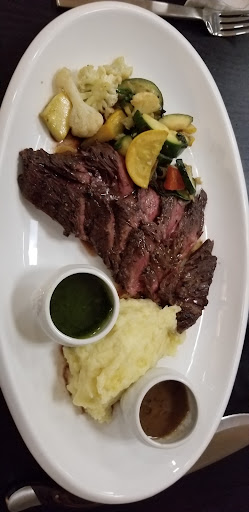 Read moreJust finished our meal. Really cool " grazing board ". Gunner, our server was pleasant and attentive. I ordered the Wedge Salad and the NY Strip. I had read some reviews about how the steaks have come out overdone as well as a long wait. We kind of experienced both. The Chef was REALLY NICE and came out with the steak and showed it to me for my approval. It looked great. I asked to have it seared with with black peppercorns, medium..and he was very attentive. The problem is that for the next 10 minutes we waited for my partner's meal to be cooked. This means, inevitably, they left the Steak on a hot plate or under a lamp. By the time it came to me it was medium well at best. The bigger issue is that the chef, who was again, very nice and attentive, came out and personally asked if it was cooked to my liking. I showed him the steak cut and he asked if I needed it done MORE. I nicely told him that it was actually a bit overdone but fine. NOW...they did mention that their POS System was down and they seemed to be short staffed....so this could have very well caused the confusion....but I think once I said it was a bit overdone, that might have prompted and offer to re-fire a new one. The potatoes needed more salt for sure...I don't like a lot of salt at all, so believe me, the potatoes were a bit bland. I asked for the steak without their butter...which might have thrown off the spicing ritual of the chef, but the steak definitely needed Salt. I generally think most steak places actually hide behind butter and salt quite frankly, so I'm not a salt hound at all. It just simply had none it seems. The Wedge Salad was decent..the bacon was cooked perfectly, but the wedge was swimming in dressing. The flavor was OK. I LIKED the fact that they serve a four course meal as part of the entree, and I really like the menu choices. I think they really need to work on their flavor profiles and steak temperatures. My wife had the signature Salad which was Good...and she had the Glazed beef and pork dish which was good / decent. The dessert plate had a decent Tiramasu, and an actually very good warm Cocounut dessert. The cheesecake was ok. I didn't try the chocolate brownie. Overall an ok experience. A for effort. Ask for your Steak a temperature cooler and you...