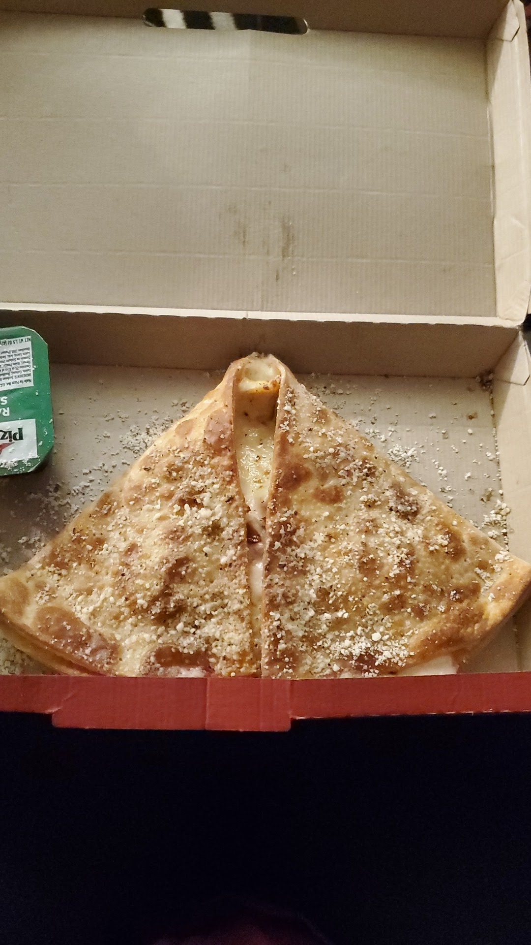 But, to be fair, the one half breadstick and one piece of pizza I managed to get was...