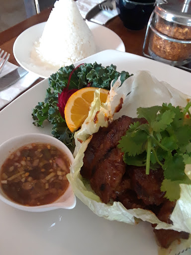 Ā Ā Ā Read moreWe stopped in for dinner on a Friday evening before 6 pm. We didn't have a reservation for 2 people but were seated right away. However, it was a full house by 6:30pm, so I recommend reservations if you're planning ahead. Also, when the place is full, it can be a tad loud as the space is small and tight. We brought a bottle of wine, and the waitress opened our bottle and brought two glass out with our waters and menus. We ordered the papaya salad, tom kah soup, and we shared a whole fish with curry sauce (pla chu chee) and everything was amazing. The fish was a branzino, partially filleted, fried till crispy, mostly boneless, and served atop a decent amount of veggies, but could have used a little more of that delicious curry sauce! The soup was refreshingly tart and lemony. The papaya salad had a nice, fresh crunch and sweet and sour flavor. If you like rice, the portion that comes with the fish is a bit small, so I would order an additonal bowl as a side. Service was very quick and all three of our dishes were brought out together within 15 minutes of ordered. Market price for the fish was $32. Great service, food, atmosphere, and presentation overall. Would love to come back and try...