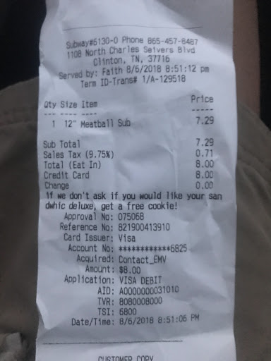 Read moreI have been picking up catering meals here for the past year for my work. The staff here have always gone above and beyond to help me with my orders. In the four I have done (the last with 25 box lunches) every single sandwich was there, receipt in tow, and they ALWAYS help me carry it to my car. From dropping off the paper with my order on it to pick up, these people do such a wonderful job. I can’t thank you all enough for making something that stresses me out not so hard. If you need a catered lunch for your business/organization, this Subway is a great pick....