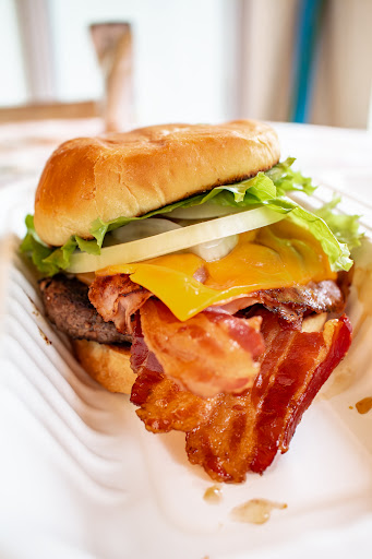COWBOY BURGER: ⭐️⭐️⭐️⭐️ So the Cowboy Burger's beef patty was decently flavored but was over done. While I did ask for it to be well done I do think it is possible to make a burger safe to eat without being dry. The bacon was literally perfect. The rest of the burger; ham, cheddar, lettuce were perfectly adequate.