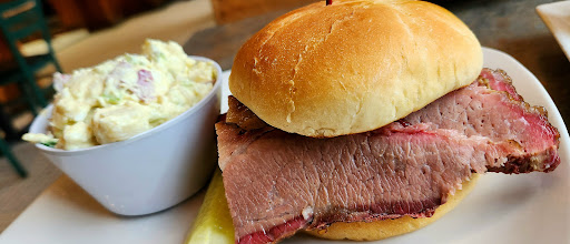 My main meal was a sliced brisket sandwich with sides of potato salad and corn on the cob. The Brisket sandwich had decent flavor with a good smoke ring ;however, the meat was dry and not juicy. The potato salad was on the bland side as it needed more seasoning to have a more southern authentic taste. The corn on the cob was spot on and tasted fabulous with a little butter. A worthy mention was the two homemade BBQ sauces which had one spicy and the other one more sweet. I would definitely come back here for BBQ as the place had good service, decent food and it was very clean. I rate this...