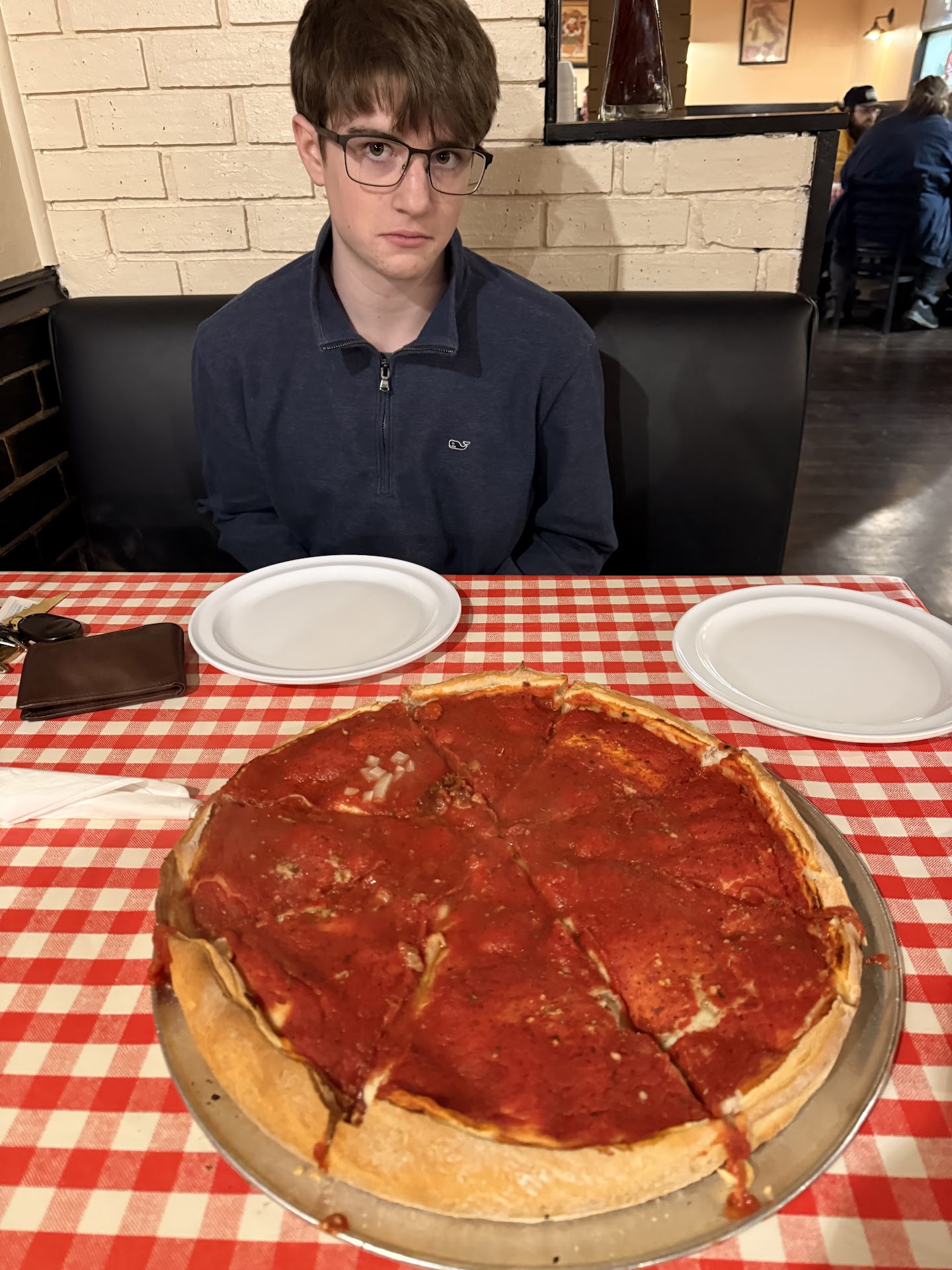 I looked into the kitchen to see a young man leaning on a counter engulfed in his phone and immediately thought he's probably too busy to make a good pizza anyway.