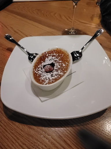 Read moreWe went here last night for our Valentines dinner. This place is a whole vibe! The staff were amazing and very helpful. I mean we had a girl that wasn't even our waitress just happen to hear on her way past our table that I said my hands were a bit sticky from the appetizer we had and she took it upon herself to bring wet naps to the table for us. Our waitress was also great and attentive but not overly hovering. She really was good at reading our energy and anticipating what we wanted or needed. The food was amazing! The Salted Carmel Cremé Brulé literally gave me goosebumps. It was the perfect blend of creamy with the crunch of the caramelized sugar on top. We started with the candied bacon and cheese appetizer, which was delicious. It had pairings that you wouldn't expect, and the flavors worked nicely with each other. Also, the presentation of the food was beautiful. Koodos to the chef! We sampled the barrel wine which was a bit on the tart side, not my style, but my fiance loved it. He said it was very smooth. We also sampled the passion fruit wine as well as the chocolate noir and the blueberry before finally settling on a bottle of the romance red which we absolutely loved so much that we grabbed another bottle to take home. The passion fruit wine was the most shocking of the wines we sampled. It was an unexpected punch to the face in a good way! It's literally like taking a bite straight out of a passion fruit. The chocolate noir was also good but not as a stand-alone unless you really love chocolate. It would bring out the flavor of their chocolate truffles nicely though. The blueberry wine was also good, but it did not wow me like the passion fruit. Although I did drink the others before sampling the blueberry and had nothing to cleanse my pallet before trying it so my review may not be doing that one justice. We decided to skip dinner as we didn't want anything heavy, but I did get a cup of the crab, shrimp, and lobster bisque, which was surprisingly good as well. I think there may have been some tuna in there, which I didn't care for. But overall, it was a wonderfully pleasant experience, and we will most definitely be returning to Cooper's Hawk! I wish I could remember our waitress' name as well as the woman who stopped by to drop off the wet naps, but if either of you are reading this, you know who you are. Keep up the fantastic work, and we very much appreciated both of you. Also, to anyone else who wants to try Cooper's Hawk, I suggest you make reservations, as they are quite busy, which speaks for itself. Also, don't forget to check out their gift shop before you leave. They have some beautiful stemware, candles, and great gift sets for that wine connoisseur you know. Keep up the fantastic work Cooper's Hawk! Until...