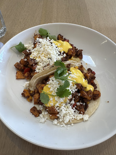 The food was excellent: breakfast tacos. The chai latte with oat milk was superb. Not too sweet perfection. I didn’t receive my chai latte until after my food came. I was under the impression my drink order was forgotten about. The service was lacking, unfortunately. Many of the girls just standing around looking lost. I had to ask for a water refill twice.