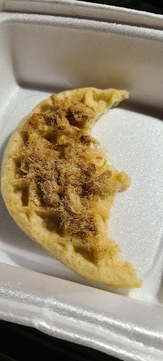 I am a fan of traditional Vietnamese food; this was my first experience with snack/street food. Unfortunately, what you see on the menu is not always what you get. Despite having a really fun texture, the fried sticky rice is pretty bland and needs the included chili sauce; it's mostly rice without much filling to give it flavor. The fried skewers are basic and unseasoned. The fried corn tastes okay, but mostly resembles plain buttered corn. The pork buns are pretty tasty, filled with a variety of seasoned meats. The butter melt waffle was very disappointing, it doesn't match the description on their website, nor the pictures on the menu. It's a plain, untoasted eggo waffle with shredded beef jerky chew on top(see pic).