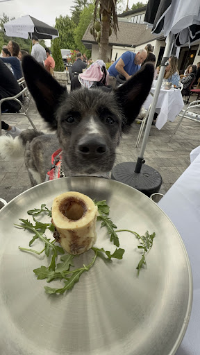 My husband and I had a reservation with our 3 pups on the patio. The space is large and the atmosphere was very welcoming. The staff immediately served both us and our pups water and brought over Milkbones and marrowbones for them.