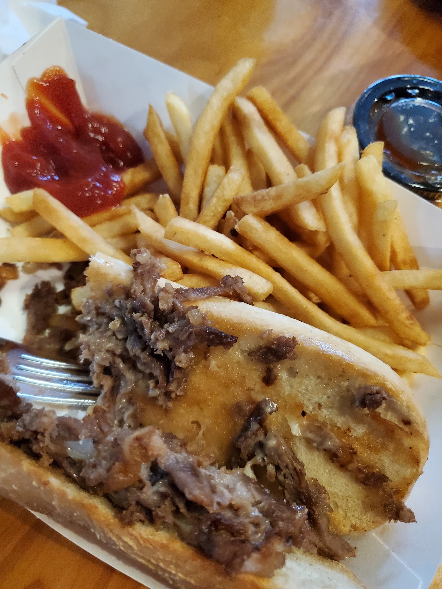 Read moreClean, friendly attentive staff. It was 430 on Tuesday. We ordered breaded artichoke petals and chicken wings as appetizer. Both were great. We both orded Philly with fries. I think it needed a little more cheese and the bread a little less toasted but it was good. Menu is small but I assume it's because they are still new. Plenty of parking. I love the bar mantle. Restrooms were clean. We will be back to try the burgers and have more...