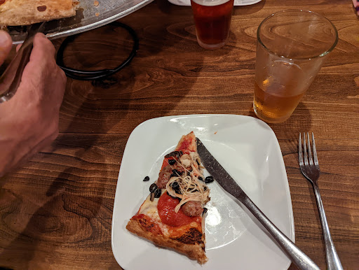 Have been here a few times and have eaten in both the outside dining area and inside and always have a great experience with family or friends. Simply very casual place to have a great meal. Pretty quick service is a little bit confusing having table numbers already set because I've never know if I just sit down and they bring me the food or I give them a number so that has never really been explained clearly to me but they always remember what you had so obviously it works. Also have a pretty good local beer and wine selection but the last time I went two of the beers I ordered on the menu were out of stock and I wish they told me that before I paid and felt like I was forced to choose something I didn't really want. Definitely very good atmosphere of a family-friendly but still classic and modern pizza place parking is super easy since it's right downtown and they have some parking in the back as well. It can be a little crowded on the weekends, but if you don't mind a few minute walk,...