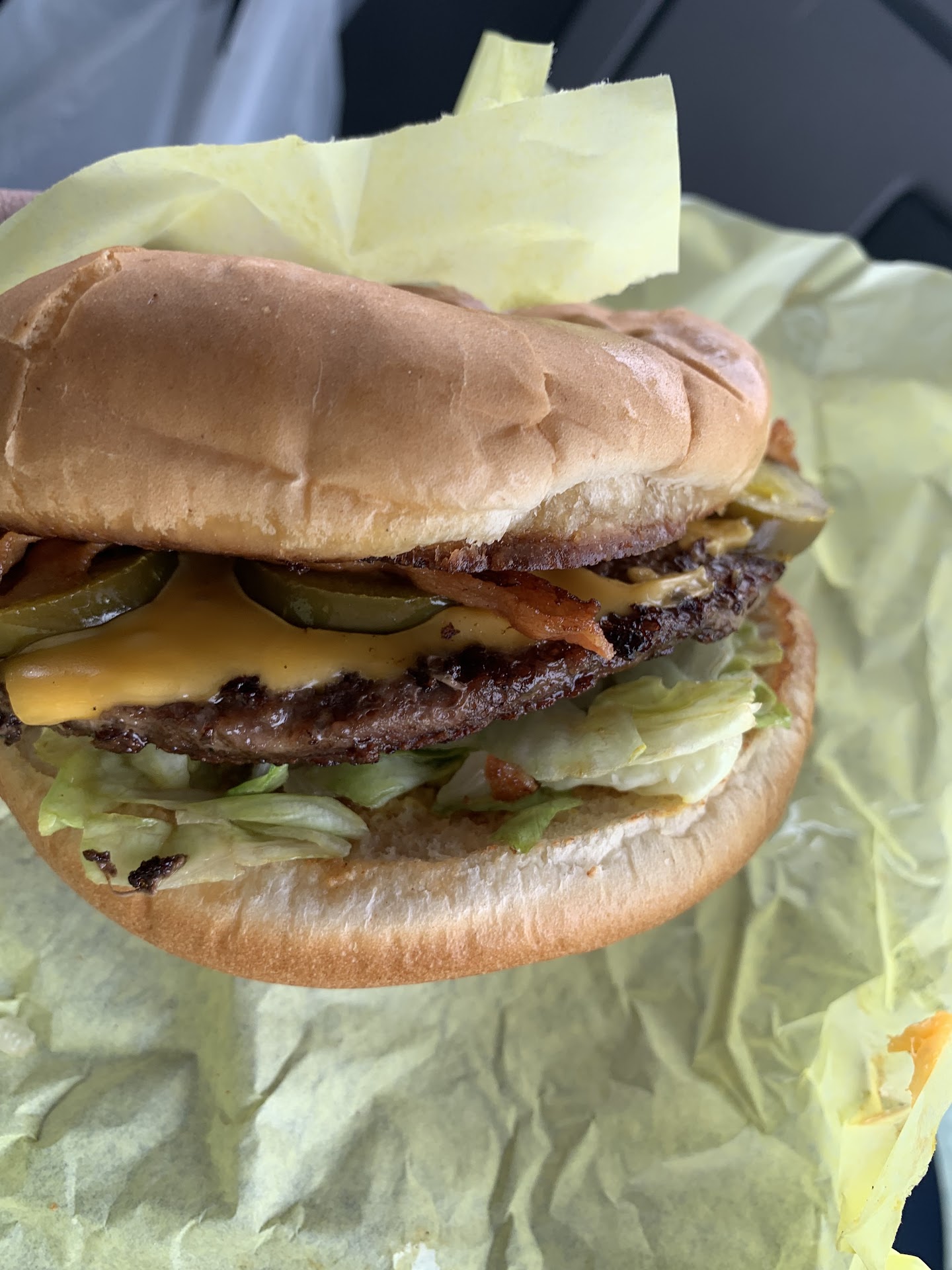 Passing through from Santa Fe to Austin TX we were happy to find this stop on our way home. Dining area clean & I was happy to see the support on their dining walls for local teens. Both restrooms clean, staff wear masks, greeted & received great customer service. Cook checked our order & started order before our transaction completed. Wall menu clear & specials neatly displayed on a side wall. Fountain area clean. We ordered jumbo & regular burger combos. Both satisfied with our food. My husband complimented the taste of his burger and crisp edged bun. My jalapeƱos werenāt sloppy falling out and the bacon was crisp. Fries thick & cooked well not floppy or undercooked. Sometimes we settle for the norm & hopefully I can find something close to this place in my hometown. Not sure when we would come back this way but I hope we can try the...