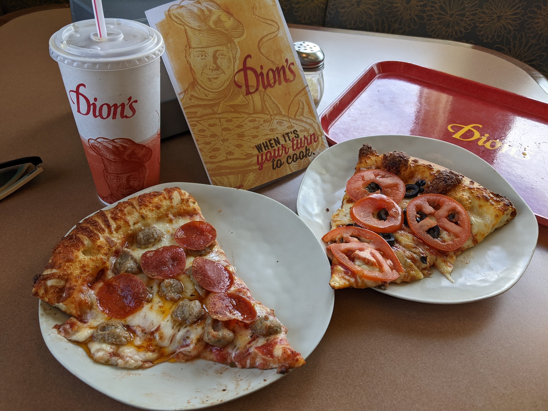 Read moreI go here often when I want the best pizza in the city. I try to dine in when I eat Dions because of the atmosphere and the customer service. The workers have always been kind and respectful. The atmosphere is clean, spacious, always smells great and I honestly comepare it to the way i felt as a kid going to Pizza Hut. Everyone knows there's nothing like it, but everyone knows Pizza Hut isn't the same and neither is their pizza. Dions tastes authentic and really well made. While it is a bit more pricey than the other pizzas around, it is worth it. I sit in the same spot everytime i dine in with family or friends. Keep up the great work Dions and team members. You guys are doing fantastic 👏 ❤️ (I can't forget how I once ordered a bottle of ranch from Dions and i never got it. It's a simple mistake, they forgot to add it to my pickup order. And i ate my pizza at home with my family, we didnt even remembered about it til the next day. Now its been months later and i still haven't forgotten. It haunts me. But i haven't told Dions. Its ok. I can forgive but i can't...