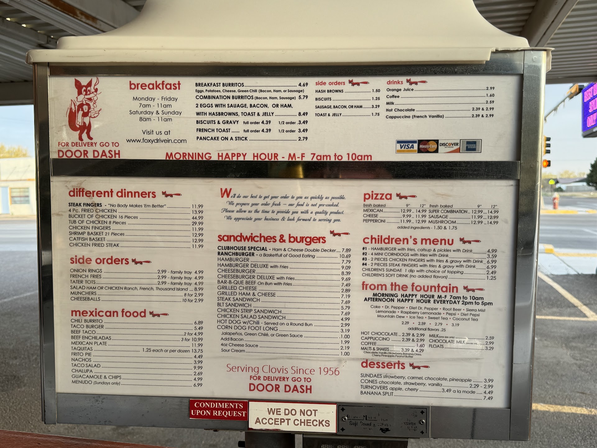 I will never be going back to Foxy’s again. Paid $30 for 2 cheeseburgers with fries and specifically asked for no condiments on one and she read the order back to me. I received the burger and it had mustard all over it. No big deal, I went in to get it fixed, which she clarified the ticket had said no mustard. I get my replacement burger, go home, it had one less patty on it, was rock hard, cheese was rubbery as if it had been sitting on it forever, and still had remnants of mustard on it. So it looked like they just took the bottom patty off of my other one and gave me the top patty which had less mustard on it.