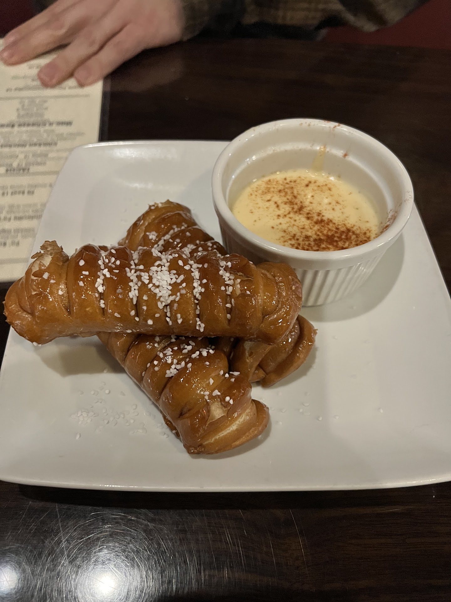 Read morePros: great location, friendly staff, decently timed service. Cons: our server seemed like they hadn’t tried anything, when asked if they enjoyed a certain drink or dish we got a lot of “I haven’t tried that one yet but it looks good and others seem to enjoy it” to everything we inquired about. Our drinks definitely had cheeeap liquor in them. I got their tequila sangria and was extremely disappointed in the taste. Tequila had that cheap bite to it, and it basically had a wine floater so it wasn’t really a sangria at all - more like a juicy cocktail with a wine floater. My husbands drink wasn’t any better. We ordered the pretzel and cheese dip for an app and the cheese was good but not spectacular. The pretzel wasn’t bad but the texture of it was like it was heated up in a microwave-very chewy. We had the intention of having dinner and everything there, but ended up leaving and going elsewhere because we felt like any other food and drink wouldn’t be good and worth the cost. Each drink and app was at or above $15 and if we would’ve know our drinks were priced that high, we would’ve sent them back. But staff was attentive and friendly. The vibe isn’t bad but definitely not what we were expecting. The restaurant feels dated and oddly laid out too, but...