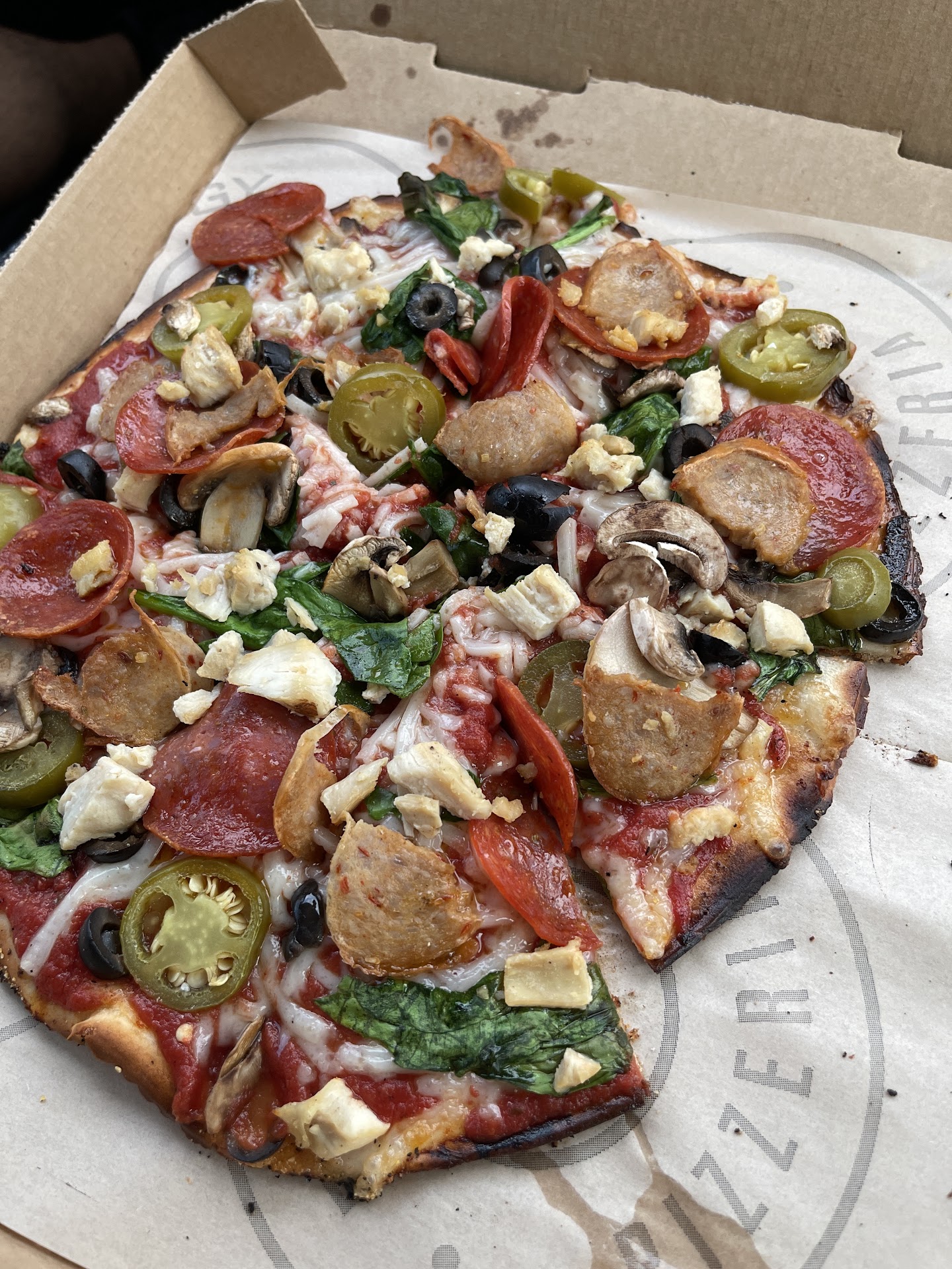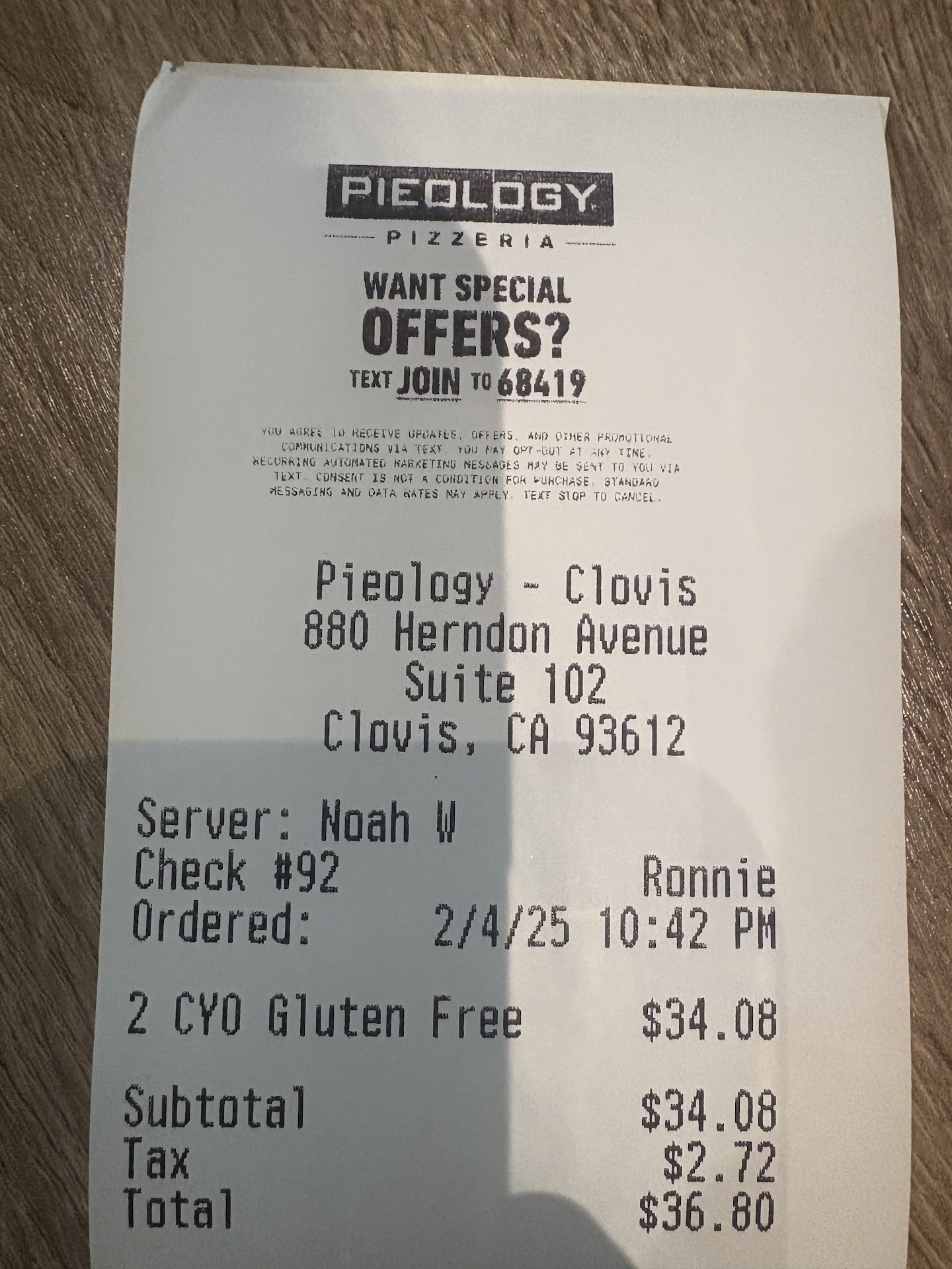 I love to eat at the Pieology near Fresno State's Savemart Center. It's one of my favorite places to go for lunch with my mom just before (or after) going to a movie. So we were both excited when one opened closer to her home in Clovis. We've eaten here several times and unfortunately it has been a hit or miss at this location. Most recently I had a side salad where the lettuce was not just wilted but slimy. The salad wasn't even chilled. They agreed, apologized and made me a fresh one to replace it. It was better but still not very fresh. Another time they gave my mom her pizza without cutting the slices. Luckily we were eating in and so she had them cut it. Lastly...make sure to pay attention while they put on the toppings. They tend to be lopsided. I was so busy chatting with Mom and catching up that I didn't notice I had chicken just on half of the slices and not the whole pizza. Anytime we had an issue they were always great about trying to make it right. So, I'll still go back...just need to make sure to order a fresh prepared side salad and not one already made. Also, ill need to keep an eye on them as they top the dough and check the box before I leave to make sure the pizza is cut into...