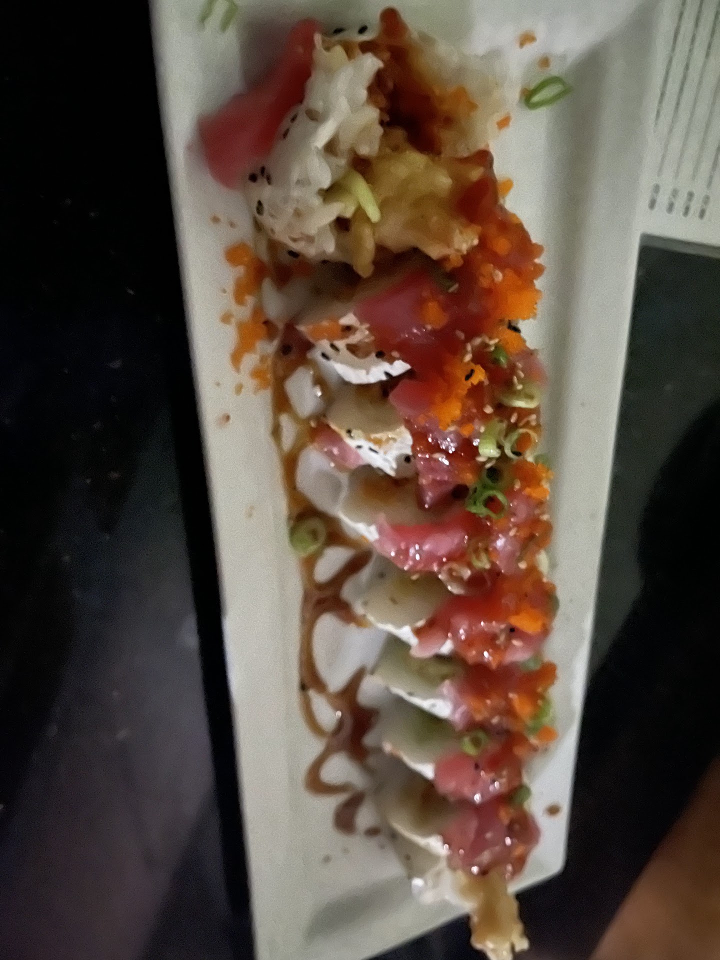 Read moreWe really wanted sushi before our movie and my mom suggested we come here since it’s in the same plaza. When we were getting close to the plaza we noticed the street lights were out as well as the power being out in the plaza. We still had over an hour for the movie and my mom figured let’s try and see if we can still eat. Lol. I thought for sure with no power they wouldn’t be able to serve us. But the staff there were welcoming and a team of troopers. Since we knew the power was out we figured let’s just sit at the sushi bar and do the raw options. Luckily they did have shrimp tempura ready for some rolls so the chef suggested the red dragon roll. My fiancé is not a fan of mayo so we got the spicy mayo on the side and the crab was mixed with siracha instead of the mayo. What a hit. Oh and I almost forgot they started us off with a cucumber and crab salad in rice vinegar that was excellent. We also had ordered sake nigori (milky sake) and my mom ordered her Cabernet (red wine) my fiancé ordered the chef sushi choice with California roll. And I ordered the masago with quail egg nigiri (it’s a personal fave) I was in luck because they had the habanero masago. My mom wanted a little more so we ordered the red dragon the same way again since it was so good the first time. The power finally turned back on as we were finishing up. My mom also ordered tuna sashimi. I honestly wanted to order more but we were stuffed after finishing up everything. We ordered a milky sake to go and genuinely enjoyed our food, drinks and service. Again I want to thank the staff for being so accommodating and servicing us in the dark. We held our phones flash lights up for the chefs to be able to make our food. Sushi dining in the dark was a great experience. And I can’t...