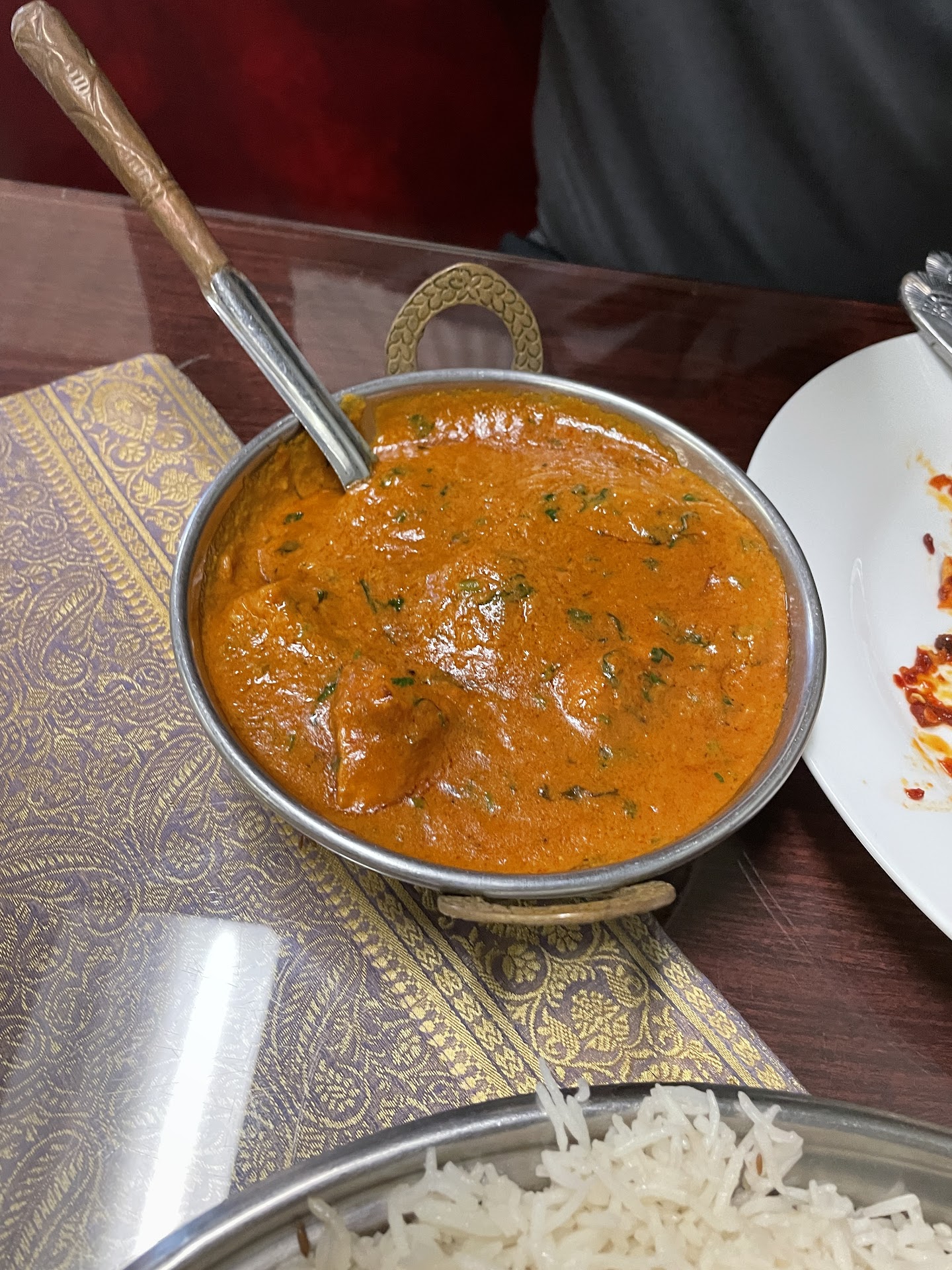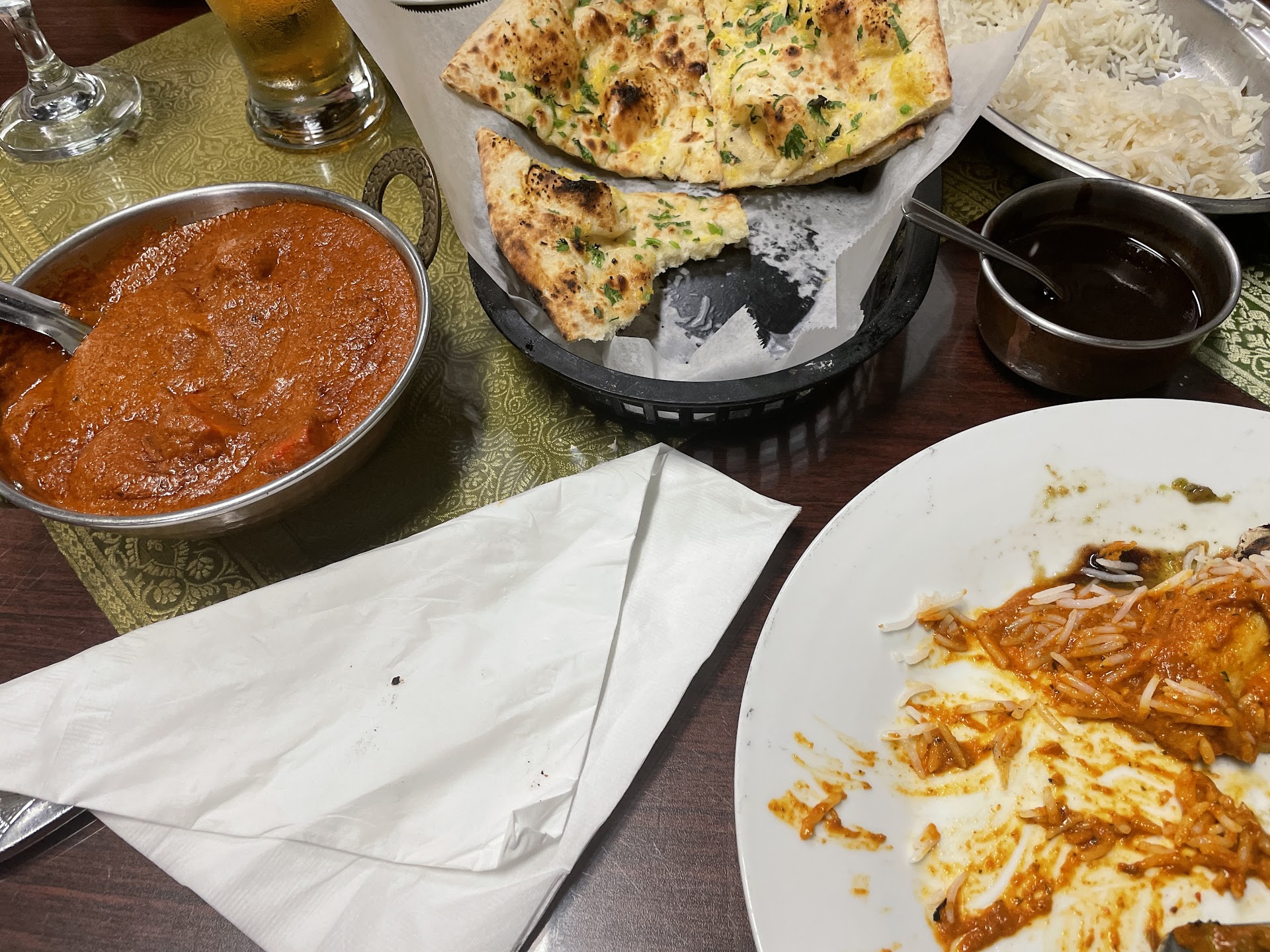 Foods ordered: Iced Chai Tea with milk • I expected a stronger tea. Chicken Tikka Masala • Flavor excellent, a thicker sauce than I'm used to. Basmati Rice • Well cooked, on the dryer side. Balances with the sauce. Garlic Basil Naan • Exceeded expectations. Lightly charred in all the right places. Mild basil herbs, basil flavor didn't come through. Next time I'd just order the garlic naan. • Basmati Rice pudding (I forgot the name... Kheer?) Seemed like a family recipe. Pleasant. Also, included was a large pitcher of great tasting ice water.
