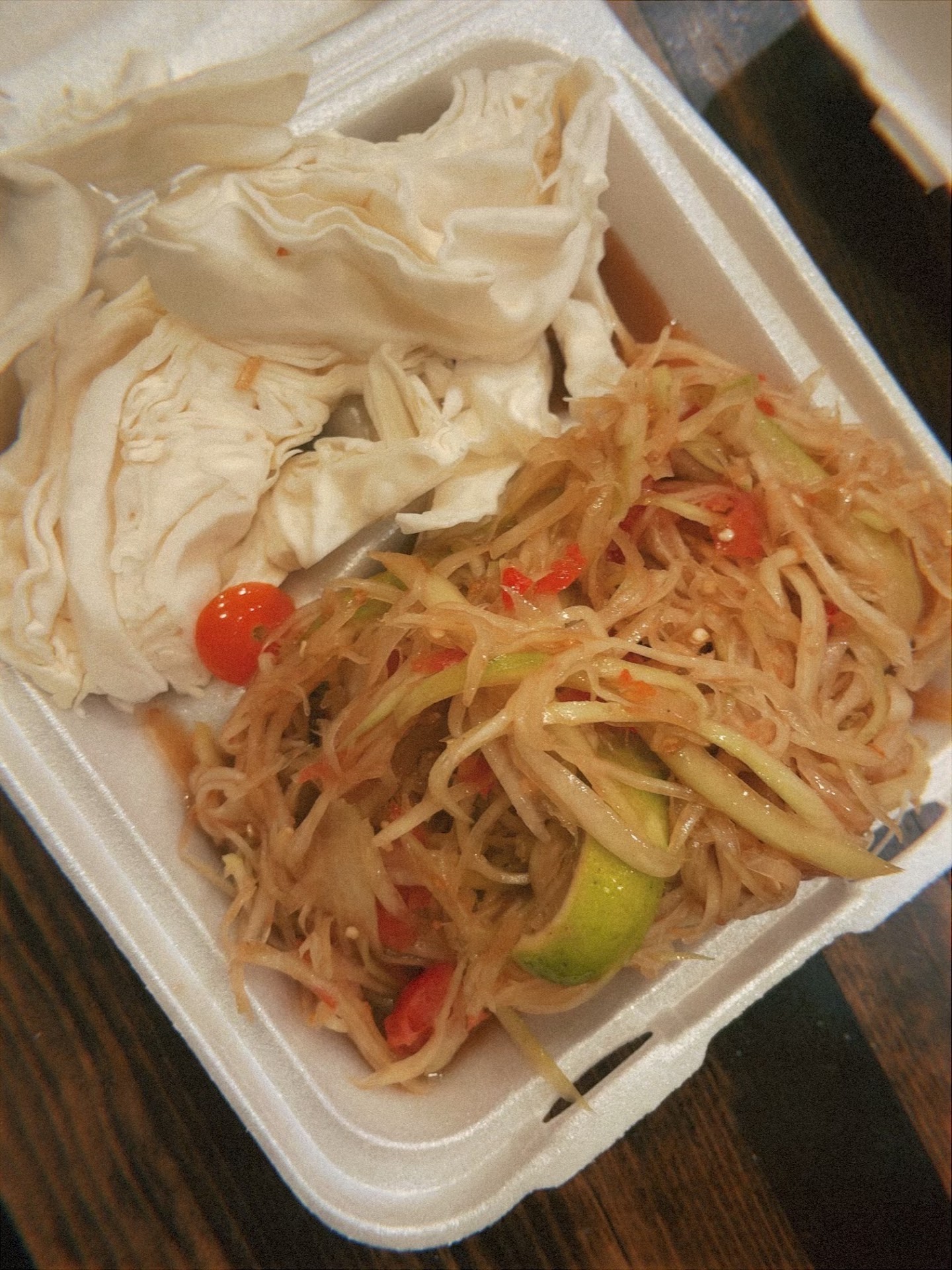I also wanted to try the Pad Thai cause it looked so good, but they sadly sold out at 5:30pm, so if you're looking to order, get there sooner - but I'm definitely coming back to try it 😋 I got the chicken Lo Mein & it perfectly complemented the papaya salad!