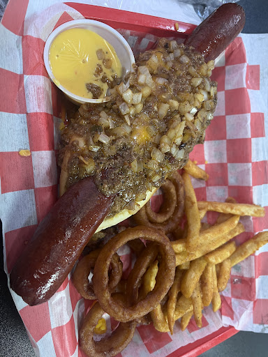 Ā Ā Ā Read moreSweet baby Jesus! The hotdog was huge! I wasnāt expecting that at all I literally assumed I was ordering a regular sized but that was awesome. My husband killed the burger before I was done. He loved burger. Atmospheres very cool. I literally never knew about this place. My husband took me and I wasnāt disappointed. I will say that and I will definitely be back to take the kids. Reason for four stars is because when I went to the bathroom, there was no toilet paper. I kindly told one of the workers. And later the worker brought my food and told me he had put the toilet paper in there, and then asked me if I had put any napkins in the toilet because that were damaged their plumbing as heās serving my foodā¦..Mind you thereās a big sign in bathroom that reads āplease donāt flush napkinsā. I wanted to tell him I can read. Didnāt wanna lose my appetite, so I responded kindly I did not flush napkins. I forgot to mention that this was totally awesome that you have three options: to get onion rings or fries. Or half-and-half! So of course I got onion...