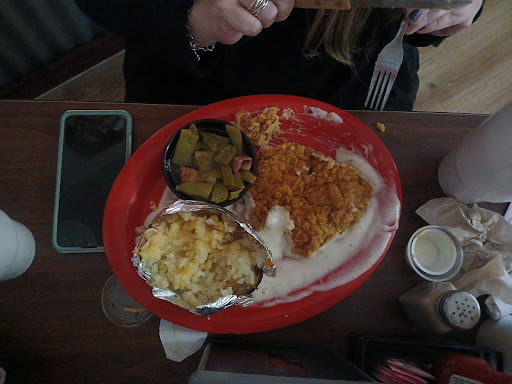 Ā Ā Ā Read moreHoly cow the chicken fried steak is soooo delicious! I had to take a picture of my wife's because I smashed mine in like 2 minutes flat. It was half a plate big and plenty of good gravy. The salad was fresh, they have plenty of dressing and the green beans were almost as good as my wife's. By boys both killed their burgers in record time, mooing like little beef cows the whole time. And they're the pickiest kids EVER. I don't live anywhere near here but I will stop anytime I come through big...