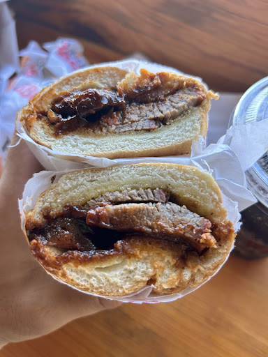 They serve classics like tri-tip, brisket, pulled pork, and grilled chicken, which can be ordered as sandwiches or paired with salad. The meats come directly from Harris Ranch nearby, so they’re fresh and high-quality. You can also choose from different breads, like buttered bread or French toast, which makes the sandwiches extra satisfying. I even noticed the staff carefully weighing the meat for each burger — if it fell short, they’d slice extra pieces to make sure it was spot on. For meat lovers, you can add extra portions of tri-tip, brisket, pulled pork, or chicken to your meal, which is a big plus.