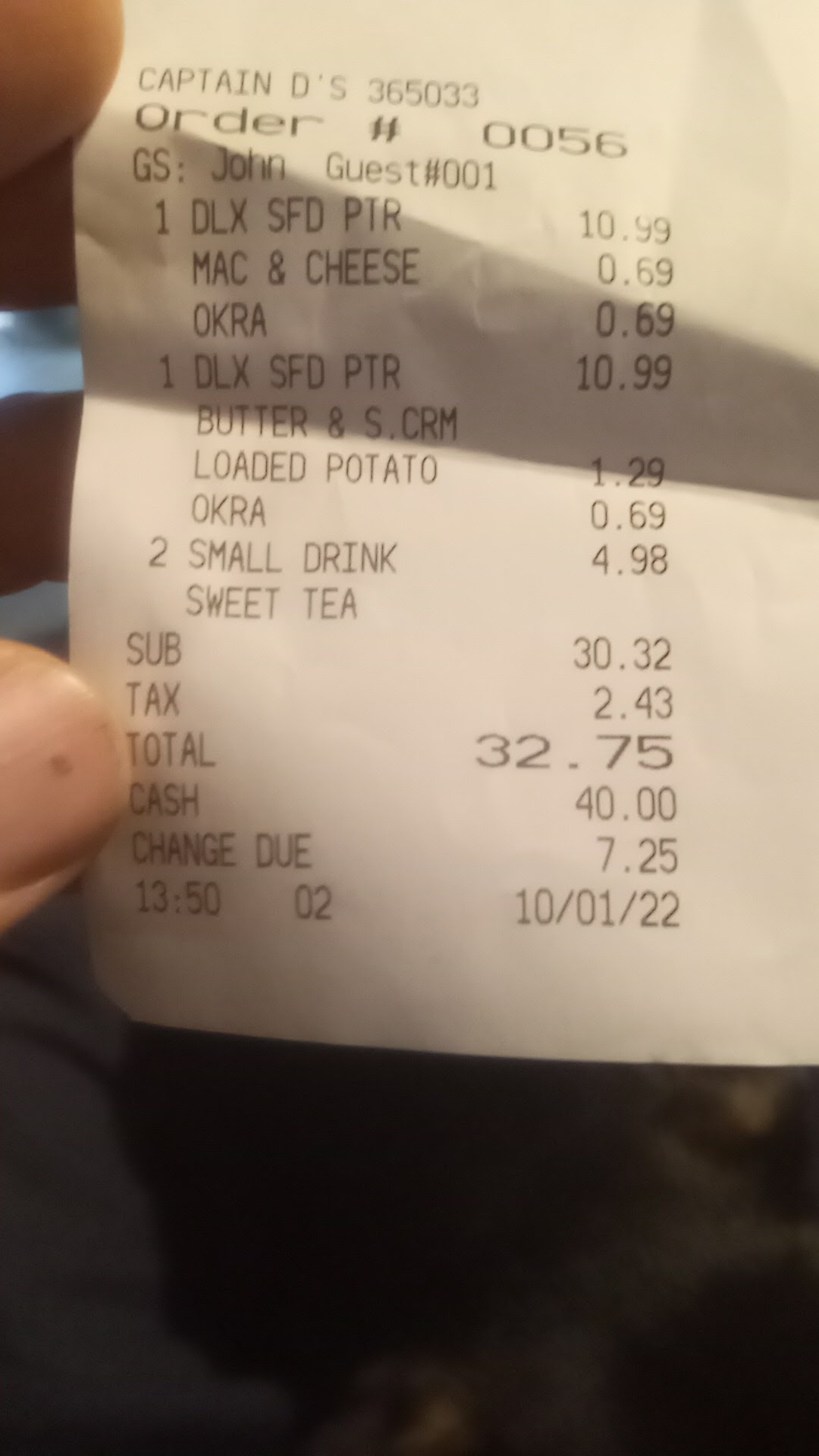 Read moreBest Captain D's I've been to in a long long time. Fresh, hot, and timely. Customer service was excellent. I went through the drive through bout 7pm. Several cars in line in front and behind me. I didn't have to wait any length of time at all. The employs working the window appeared the age of high school students, but, they were doing an exceptional job. On point and on time....