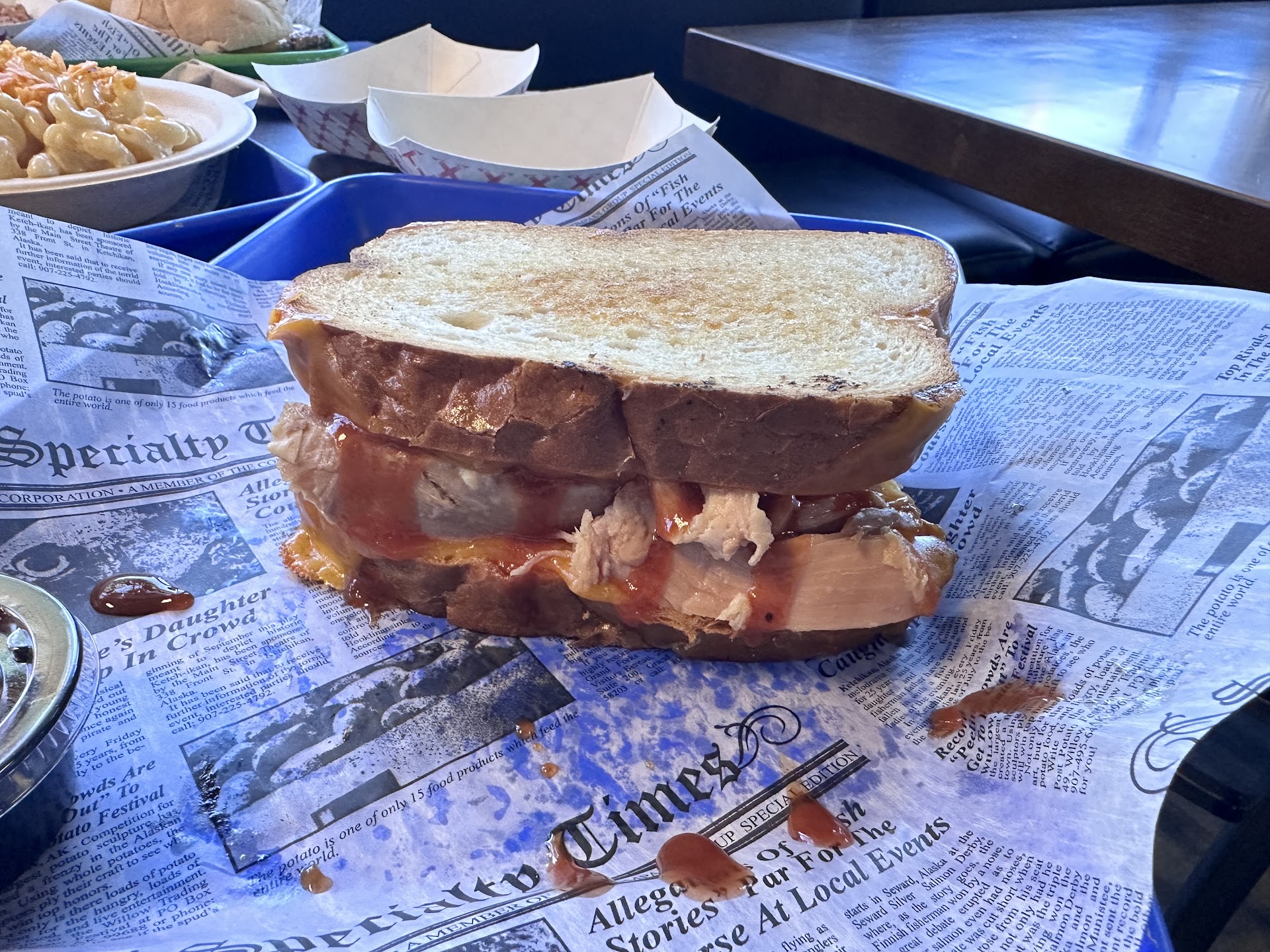 Thankfully, Thania (pronounced Tanya) soothed the savage beast within as she was our extremely charming server, sharp as a tack and on point. Thania is officially on the 4th Q best server list. She should offer server classes along with the rest of the 2023 Top 5 List. I asked Thania for one Brined Turkey Grilled Cheese, a Mom's Brisket sandwich and an order of Smoked Crack Mac. Is it just me, or are these names great? Items I missed are Porky Goodness and Frito Pie. Kudos to the creative genius behind the menu!