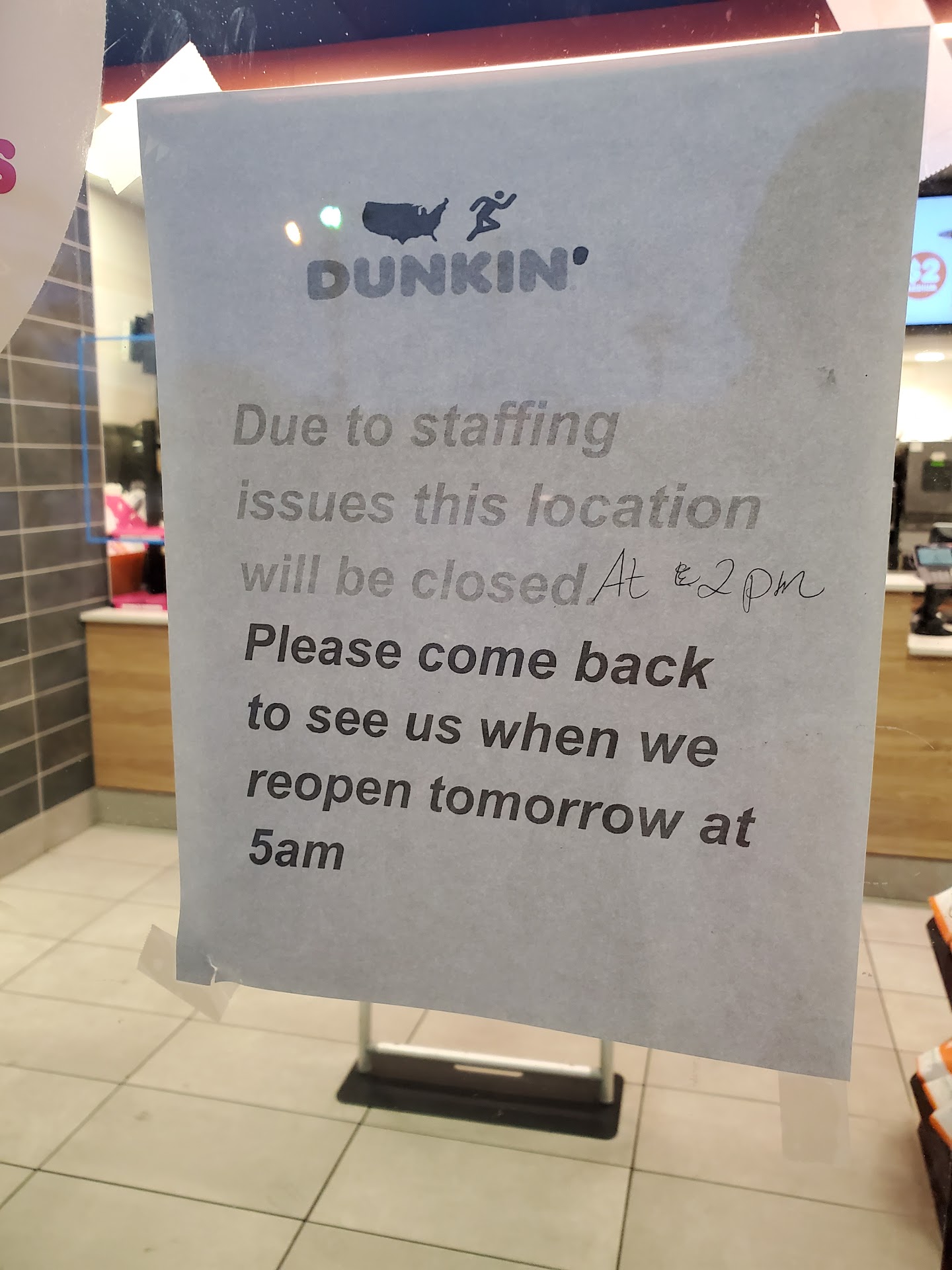 Ā Ā Ā Read moreWent in at about 8:30 pm. I don't know why, but I expected to be able to purchase some doughnuts, even at 8:30 pm. I mean, that's what they do. It is what they specialize in. They had maybe three different varieties of doughnuts. And only a few of each variety. I was kinda put off about this. I asked the young lady behind the counter what was up and she tried to explain why DD was out of doughnuts. Her explanation fell on deaf ears. I just could not believe that DD was out of doughnuts!!!!! When all was said and done, I left there with 4 doughnuts, stale doughnuts!!!!! And a bad taste in my mouth for Dunking Doughnuts. What could have been a promising relationship between the two of us, is not. Too bad because I love coffee and doughnuts and I pass by there at least twice, but most times, more, on a daily basis!!!!! I don't know. I may be wrong. But for some reason when I walk into a Dunking Doughnuts, I expect that there will be a nice variety of unstale doughnuts waiting for me when I get there. I mean , it is a doughnut shop!!!!! It is their specialty. It is what they do!!!! And not twice a day. The little bit of the young lady's explanation for why there were no doughnuts, that I can remember, is that they are only made twice a day. At midnight and at 6:00 in the morning. That makes NO SENSE TO ME!!!!! And being that that is the case, make enough to last through the day and the evening. Just sayin'...