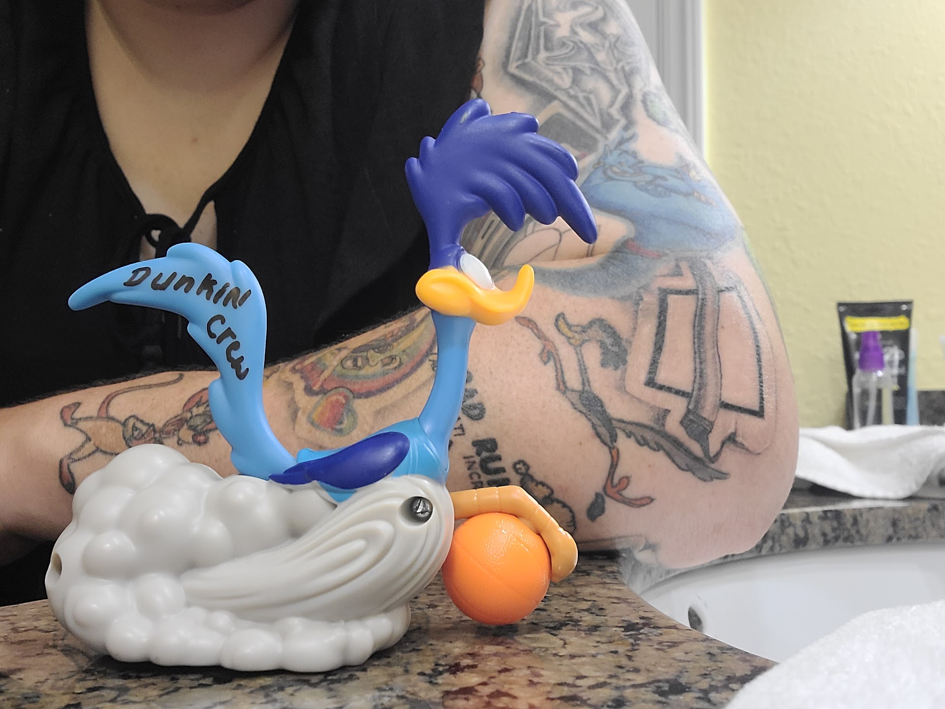 As we came up to the front we got a look at the donuts and OMG they looked like they were made by a 5 year old. Not all the donuts were complete either. For example if you did not know Dunkinā Donuts did a donut for childrenās cancers to put out awareness. They are plain donuts with yellow icing and yellow sprinkles with a glazed donut hole in the center. They managed to mess this up so bad I could not even recognize those donuts. (Pictures).