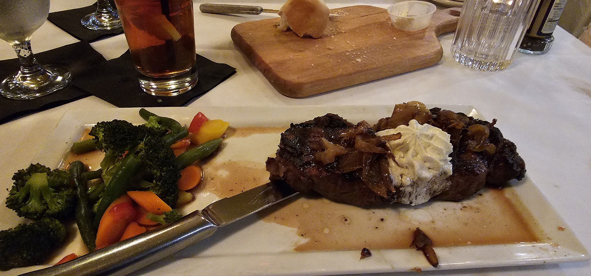 After posting this, I am looking at other pictures from otther people... Our food did not look ANYTHING like those photos. What the heck happens upstairs?!?! My steak tasted old and dry and hidden by a pile of onions on top. No garlic bulb, and charged more to get an extra pad of butter... Just crazy! It literally was a tiny pad of butter! $4 00! Looking at the other seafood photos too .. nope, nothing like that! Super frustrating for a $100 dinner! Notice I write 100's of reviews and 99% are positive. Takes a lot to be bad... Unfortunately this...