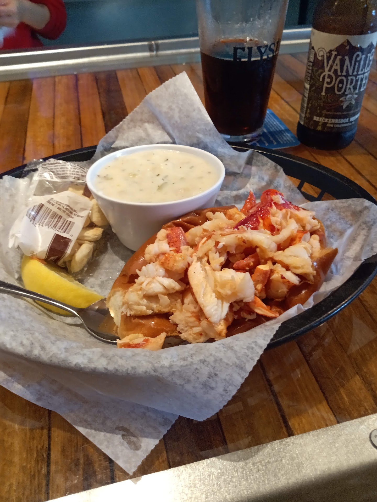 Passing through town I drove by and said to myself: "They have to have lobster rolls!" . I turned around and went back. Sure enough; they had lobster rolls. You could get it Maine style with mayonnaise or Connecticut style with drawn butter. And you can super size it. Yes, of course I did and tried the CT style. It was great! So delicious and lots of tender, succulent lobster meat. I got a choice of fries or chowder as a side. I tried the NE Style chowder and it was thick and had plenty of clams and just the right amount of potatoes. I washed it down with a Vanilla Porter and I must say that I'll be stopping in every time I'm up in the area. The service was friendly and quick. BTW: you can sit inside of out. I chose inside and sat at the super clean bar. There were four TV's and two had football games, one had sports videos, and one had animal & cat videos. I loved the cat videos! Overall it made for a great dining experience and you must try it!!!
