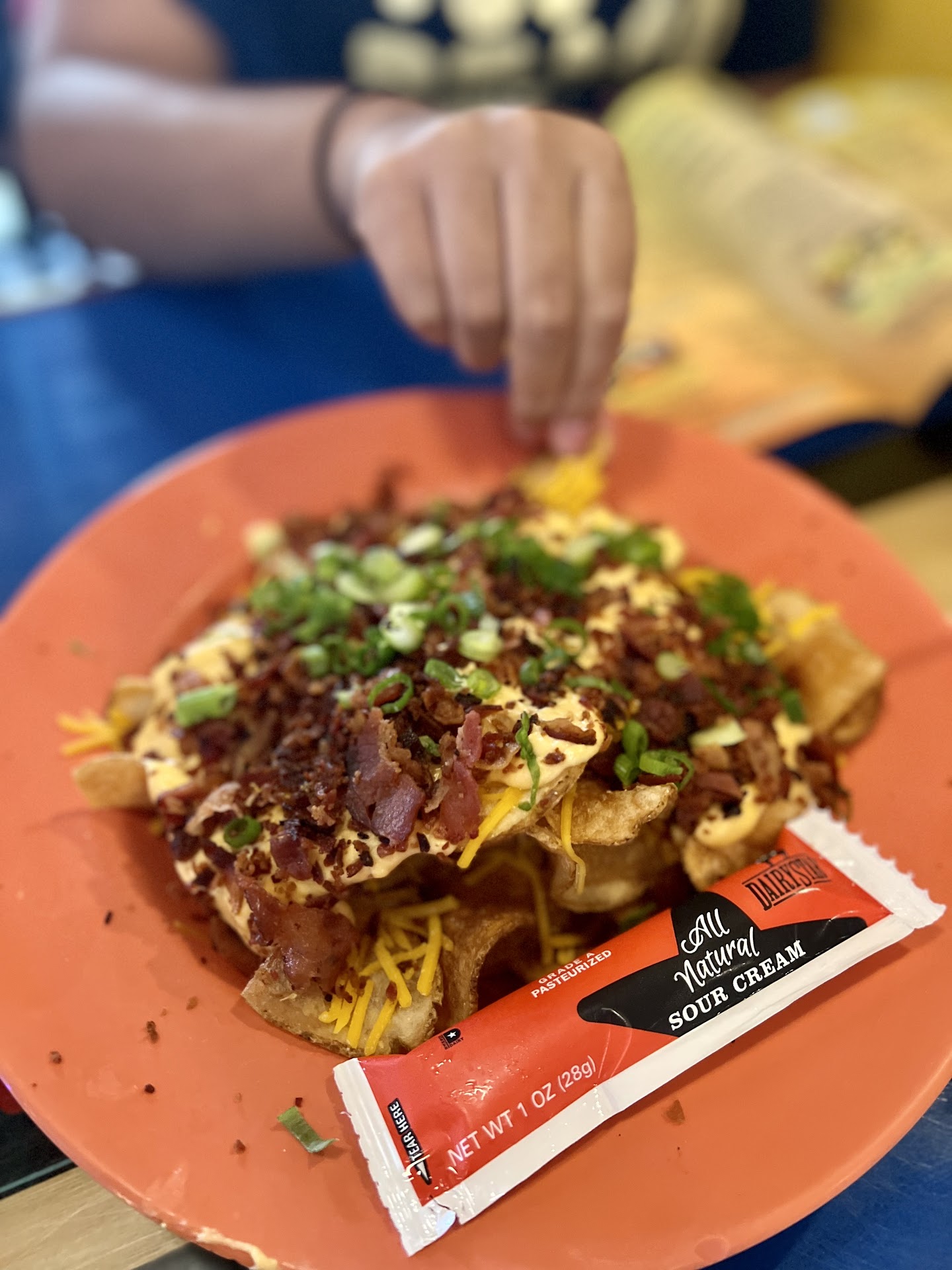 The hot dogs were actually really good ā donāt be afraid to order that if hot dogs are your thing. The fish ān chips was good but different. Iām more of a traditional British style fish ān chips person, so the cornmeal breading threw me off quite a bit, but it was still tasty. The fries are waffle style, so theyāve got some heft to them and are appropriate, I think.