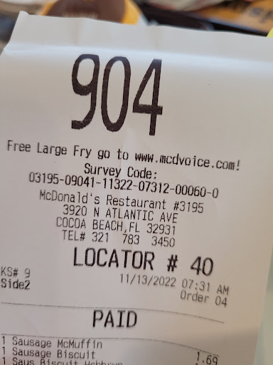 Completely unacceptable. It's like they did it intentionally, to punish me for asking for something different than what is on the board. Also, they simply are not polite, nor friendly, like the McDonald's in Cape Canaveral.