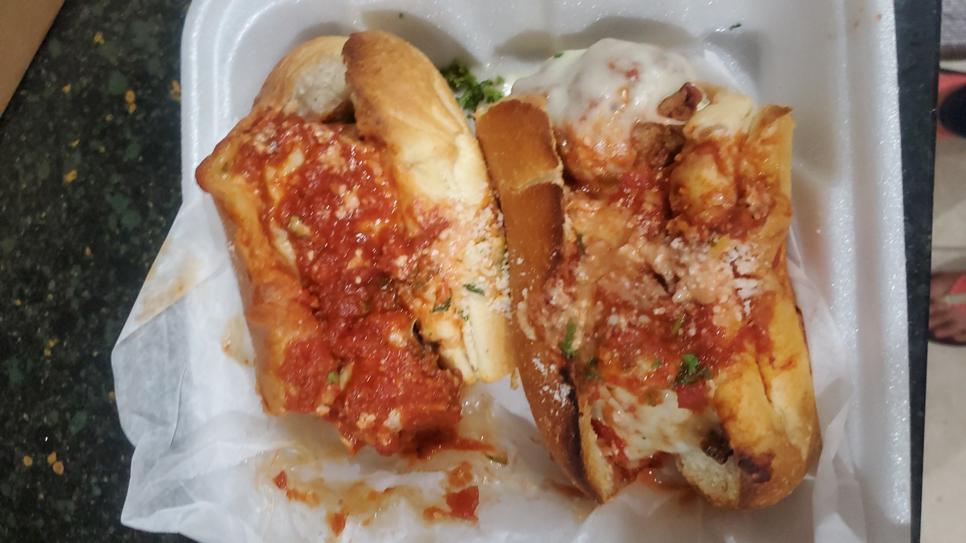 The food was excellent however the service time was horrendous and unacceptable!!!!! There were only three of us and ofrom sit down to leaving was over an hour and forty five minutes!!!!! We ordered garlic knots, two salads, veal parm and 3 slices of pizza, which were readily available in the case.