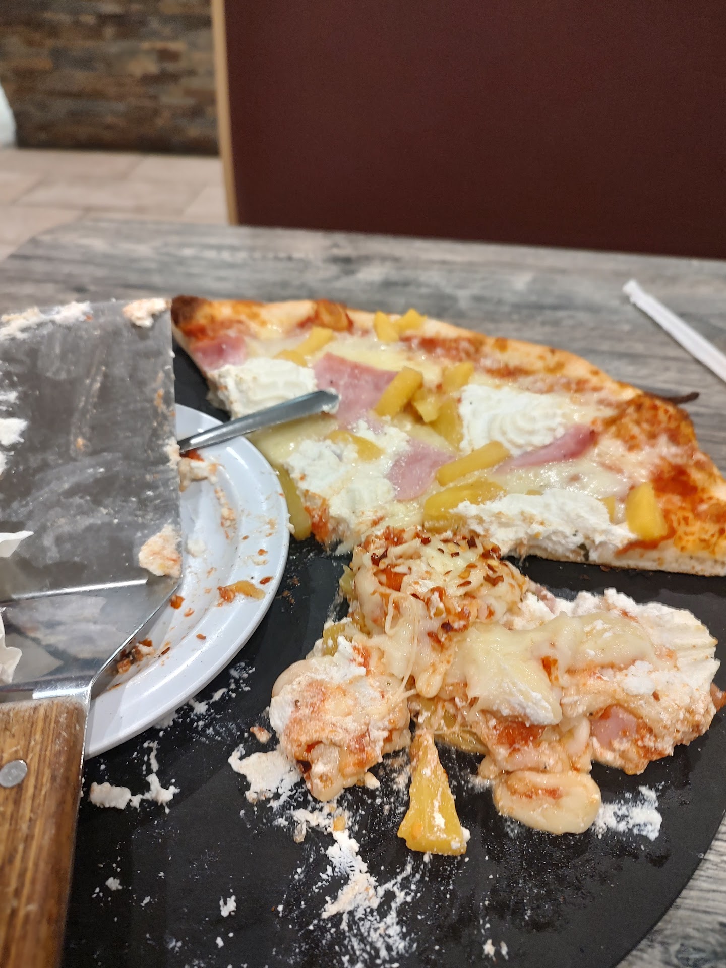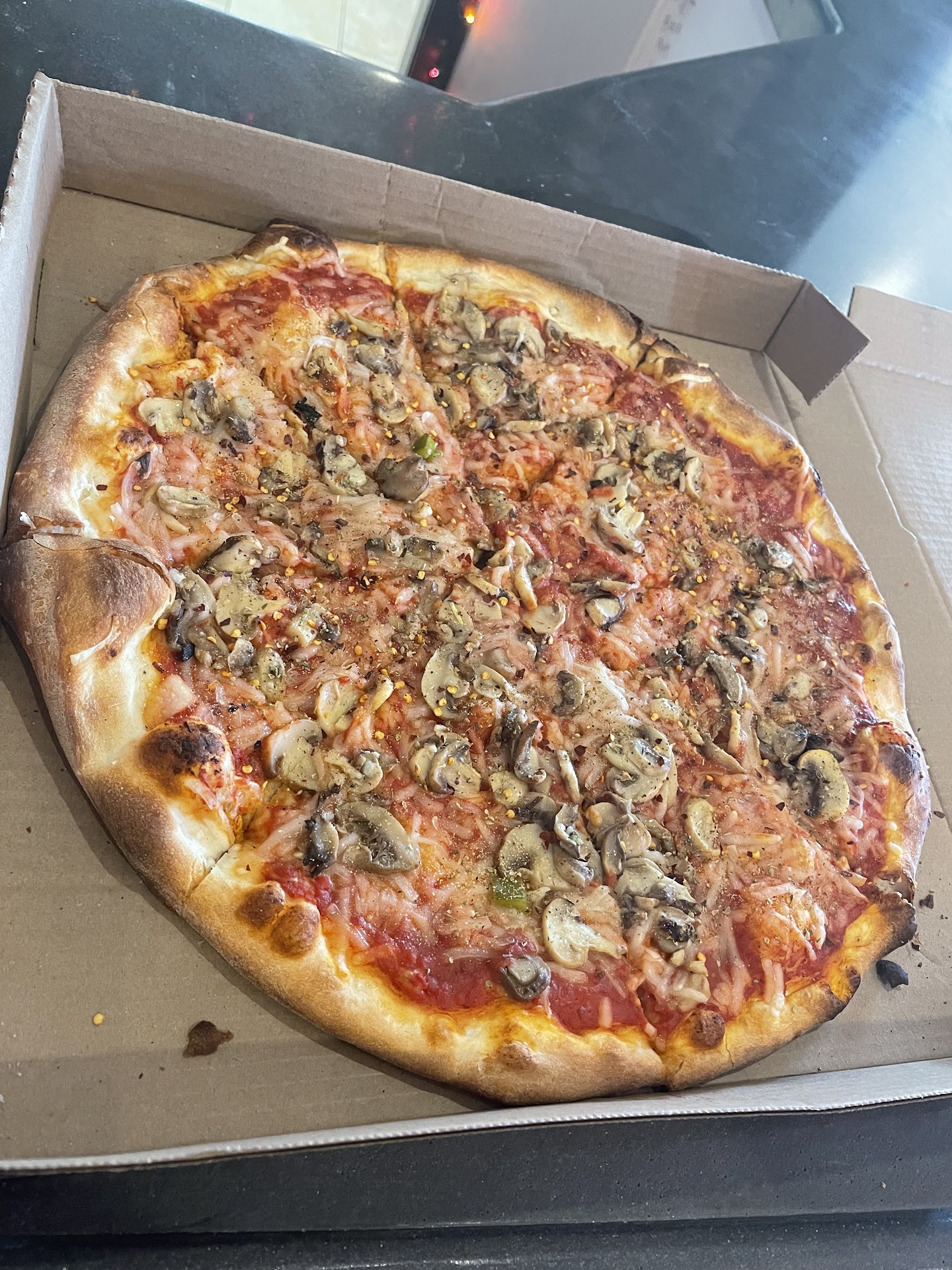 I should also note that after getting ice cream next door, a couple walked out of the pizza place and the waiter came outside and confronted them and accused then of theft because they left after ordering! They said it had been 45 minutes and they hadn't received their food yet, so they left. The waiter said their food was ready and they had to come back in. I don't know what ended up happening...