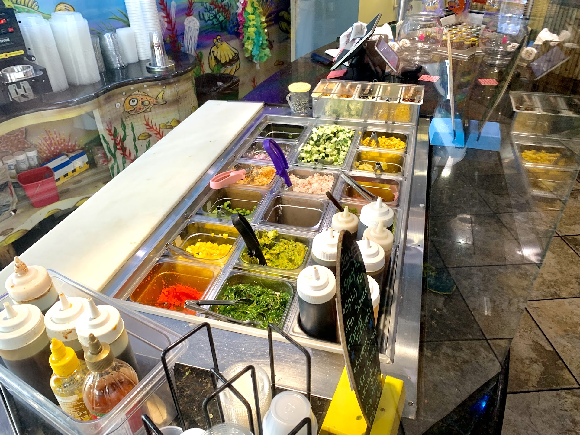 The only downside to this place which needs to be addressed is all the protein which is sitting uncovered to the elements during down time. I will add that I donāt know their procedure on time for open raw food. People seem to come and go here so as we sat and ate, the rush came and went but afterwards when there were no customers the protein just sat there uncovered. Donāt mean to be harsh here but there is no need for all that raw tuna and salmon to be exposed to the air like that.
