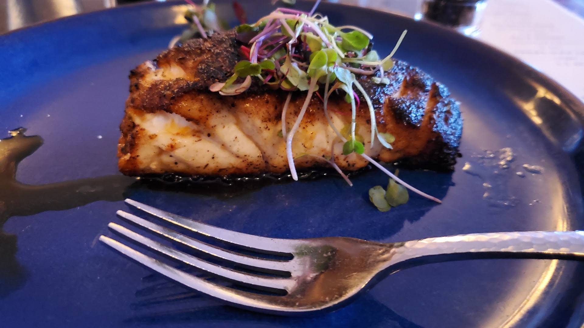 Next, like I stated, if the food taste alone was the only significance to the rating, it would be a 5+++, but food taste isn't the only thing that matters. How about portion size? Check out the photos. The fork is there to show you relative size. I had not taken a bite of anything. My wife is a petite, gym enthusiast, and she said she had never seen portion sizes so small, especially when it comes to the cost. My $30 piece of grouper was absolutely tiny. My $9 bowl of mashed potatoes was about 3-4 tablespoons worth.